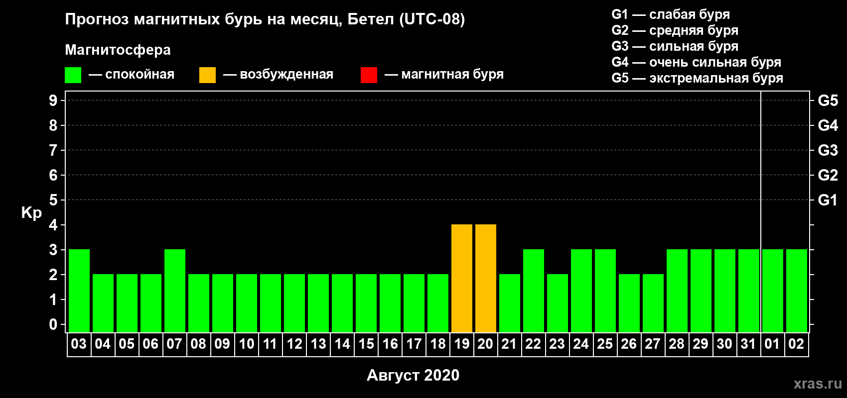Прогноз магнитных бурь в Бетеле — 3 августа 2020 года