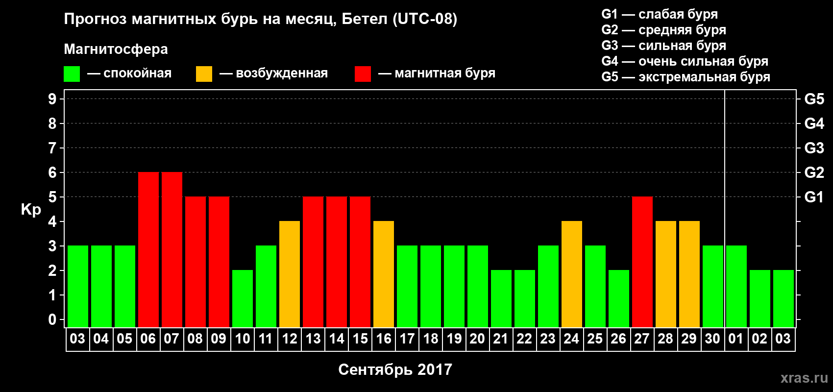 Прогноз магнитных бурь в Бетеле — 3 сентября 2017 года