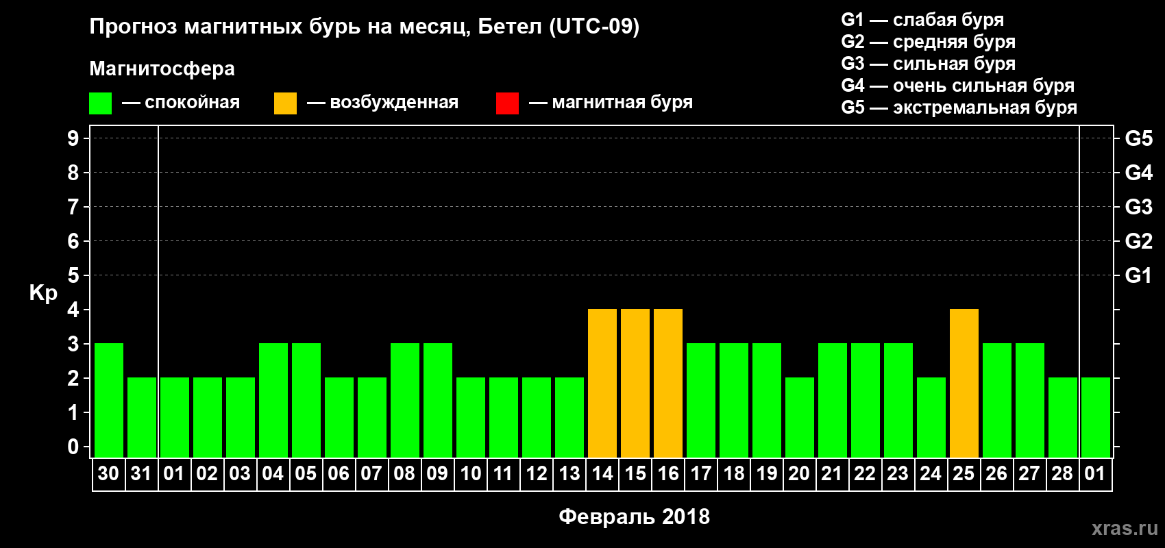 Прогноз магнитных бурь в Бетеле — 30 января 2018 года