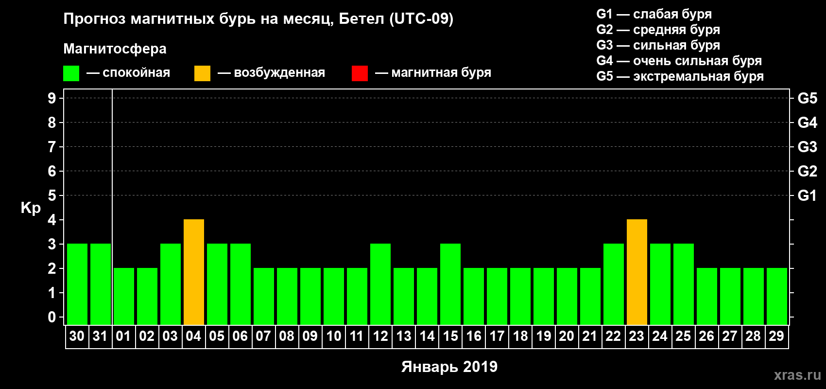 Прогноз магнитных бурь в Бетеле на 30 декабря 2018 года
