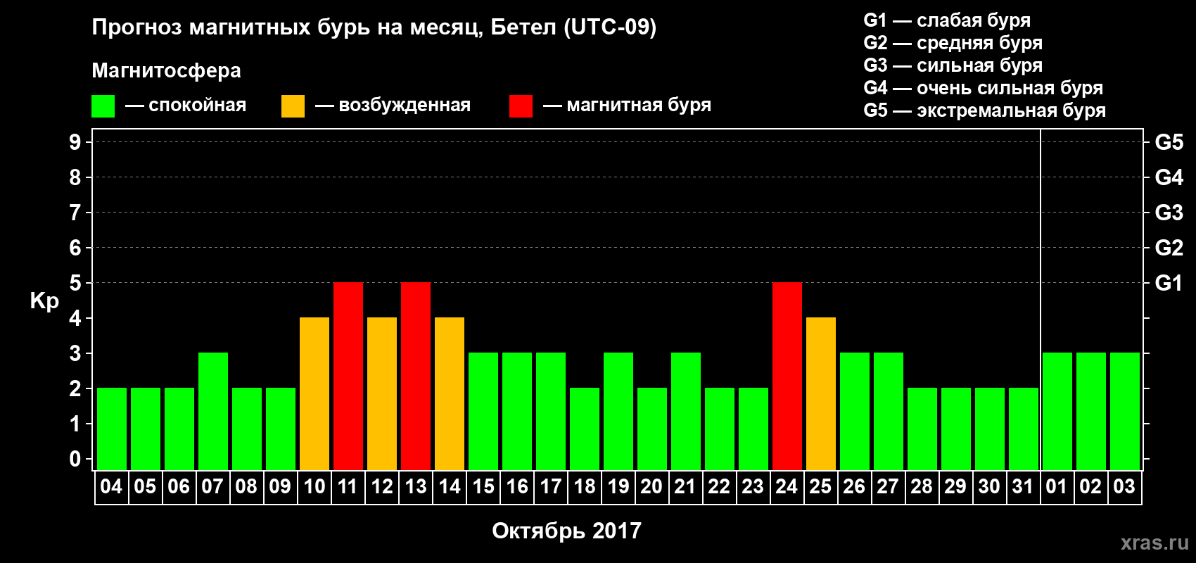 Прогноз магнитных бурь в Бетеле — 4 октября 2017 года
