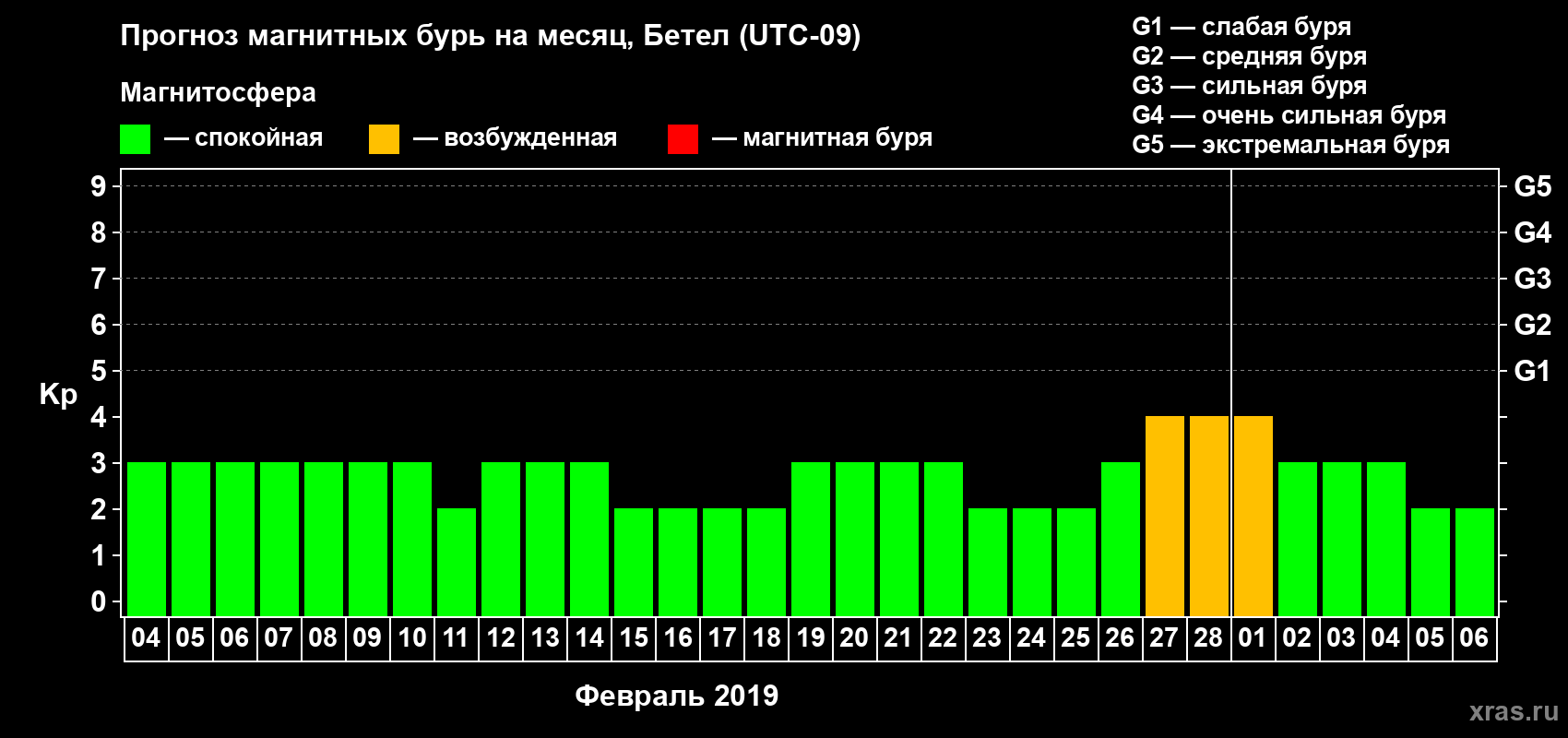 Прогноз магнитных бурь в Бетеле — 4 февраля 2019 года