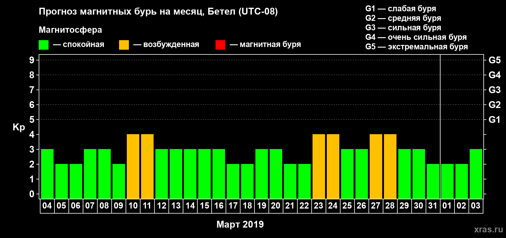 Прогноз магнитных бурь в Бетеле — 4 марта 2019 года
