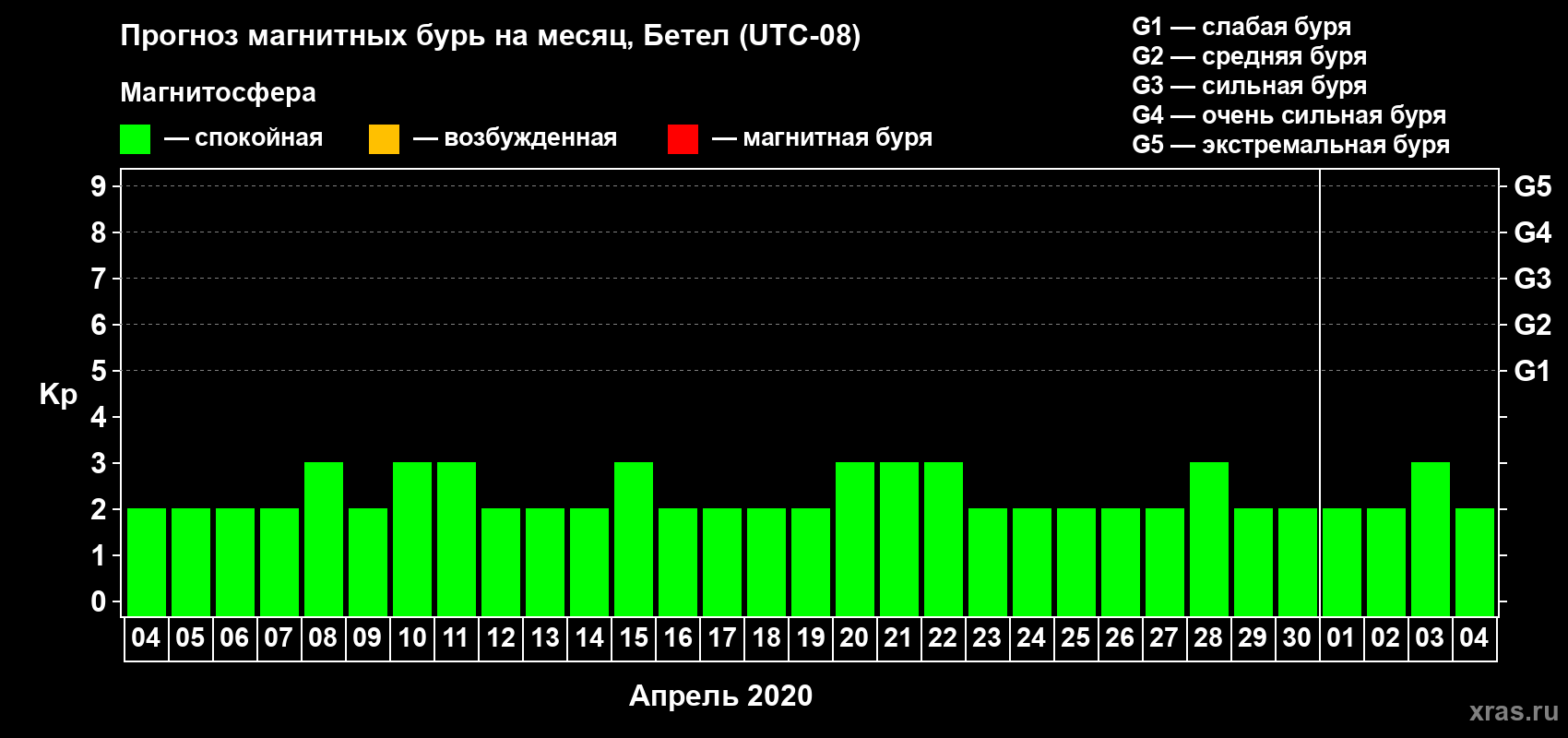 Прогноз магнитных бурь в Бетеле — 4 апреля 2020 года