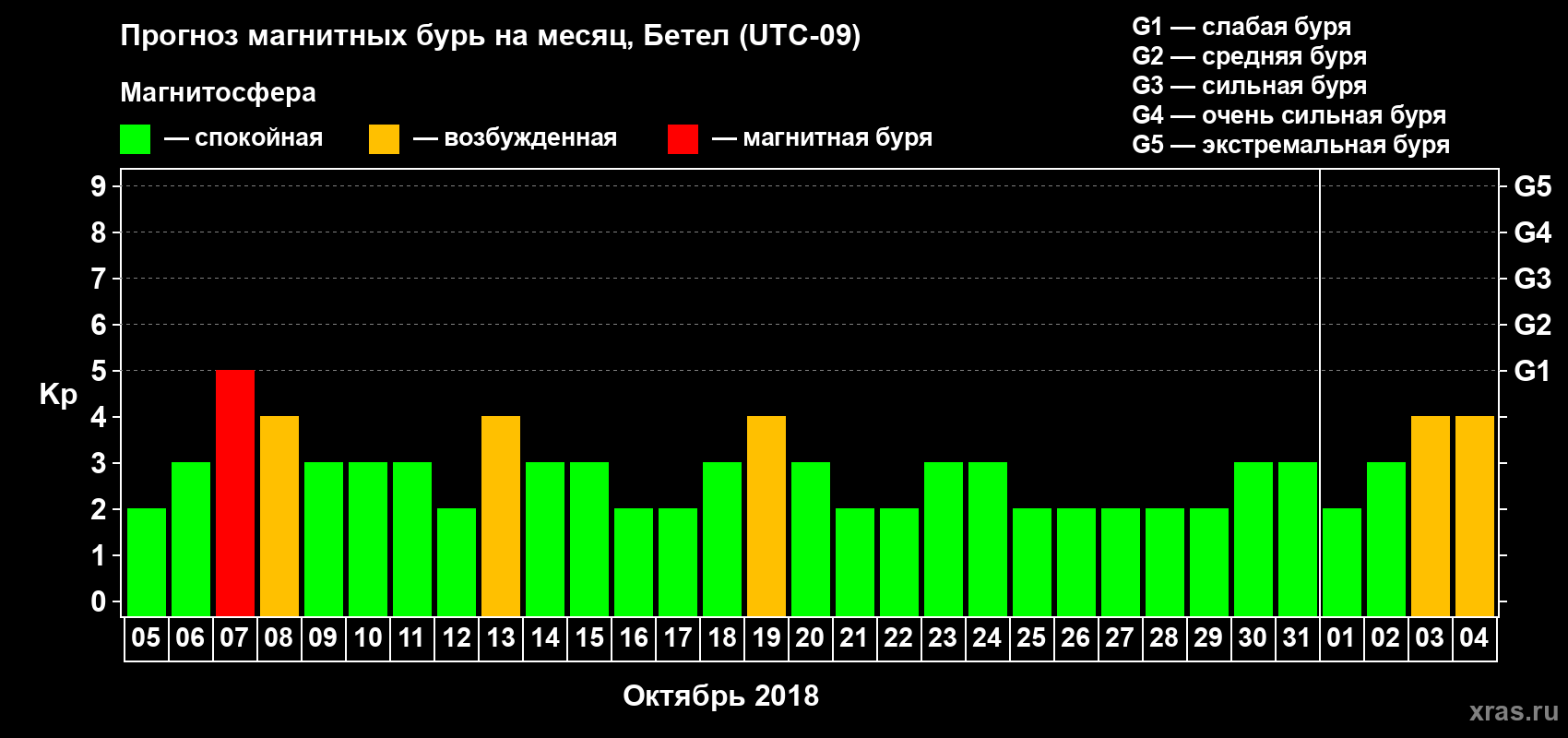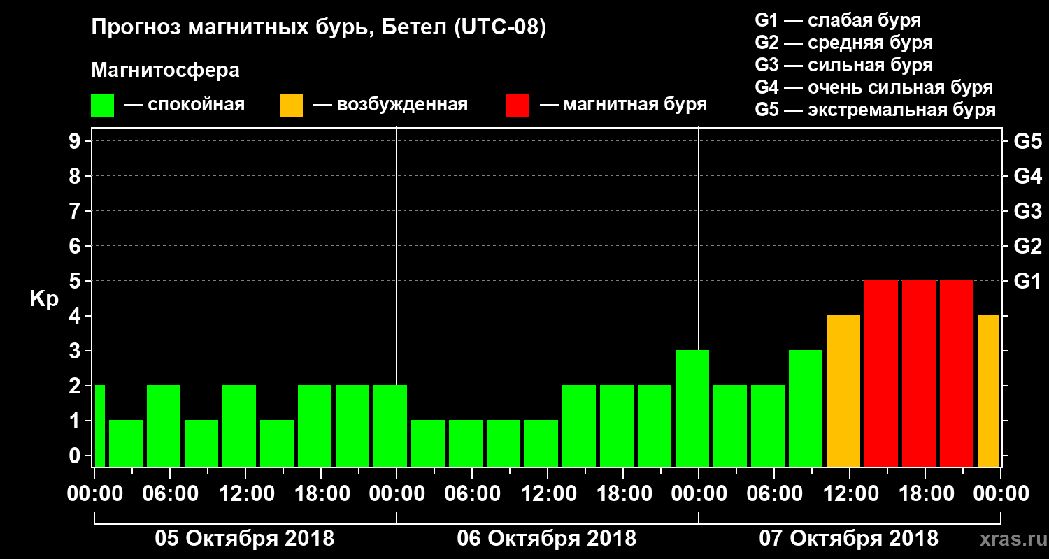 Прогноз магнитных бурь в Бетеле — 5 октября 2018 года