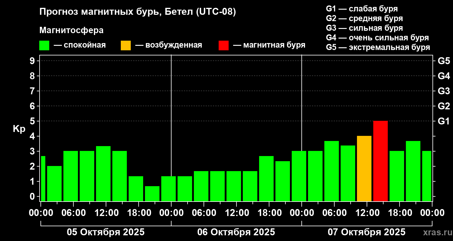 Прогноз магнитных бурь в Бетеле — 5 октября 2025 года