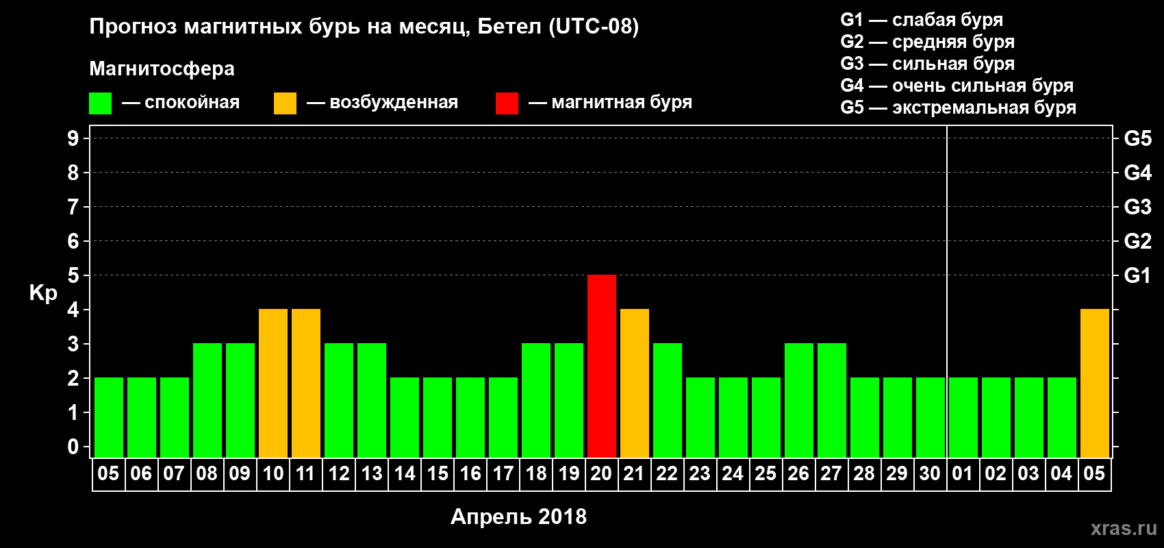Прогноз магнитных бурь в Бетеле на 5 апреля 2018 года