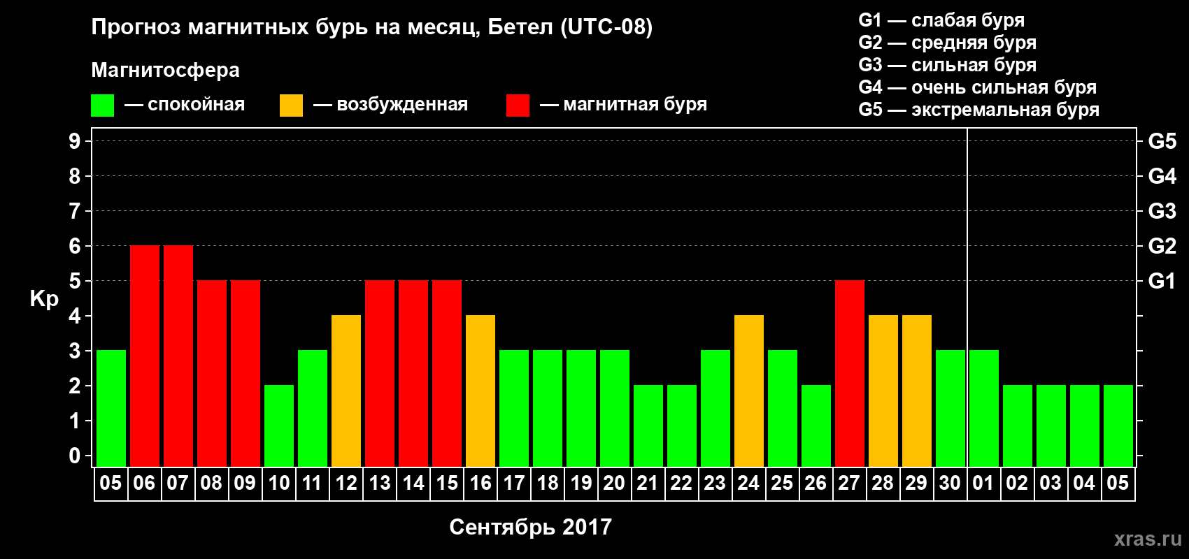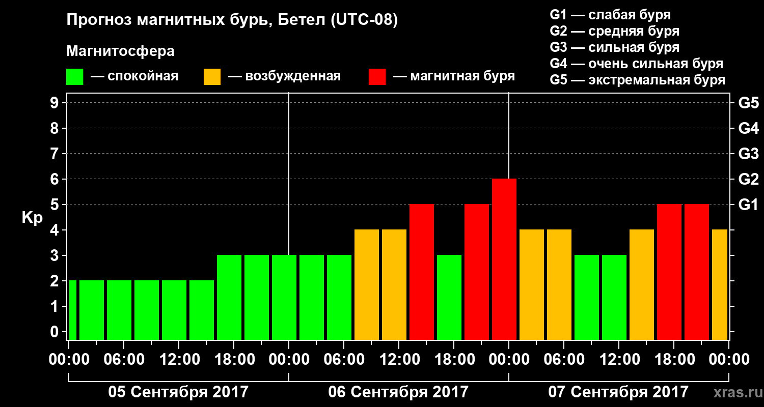 Прогноз магнитных бурь в Бетеле — 5 сентября 2017 года