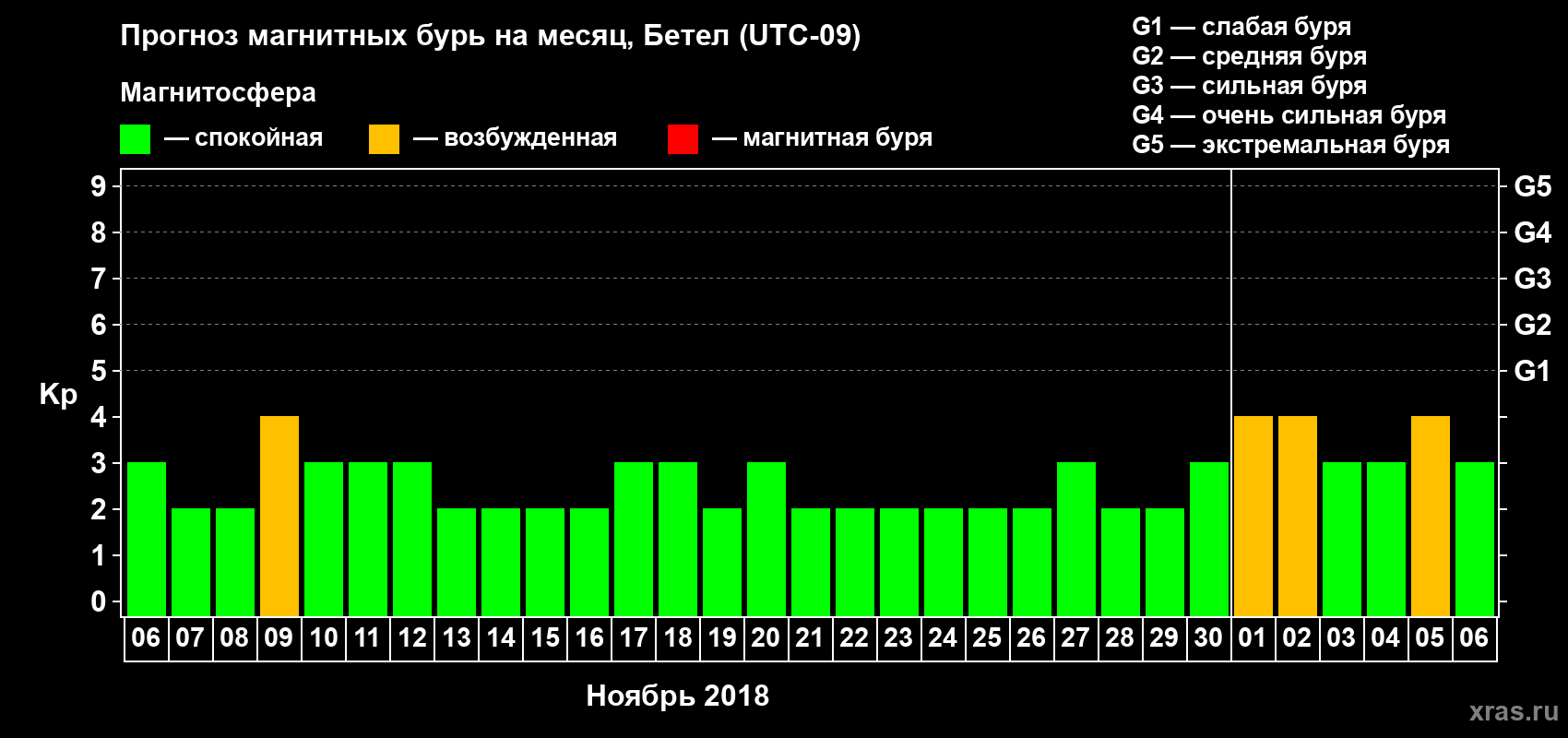 Прогноз магнитных бурь в Бетеле — 6 ноября 2018 года