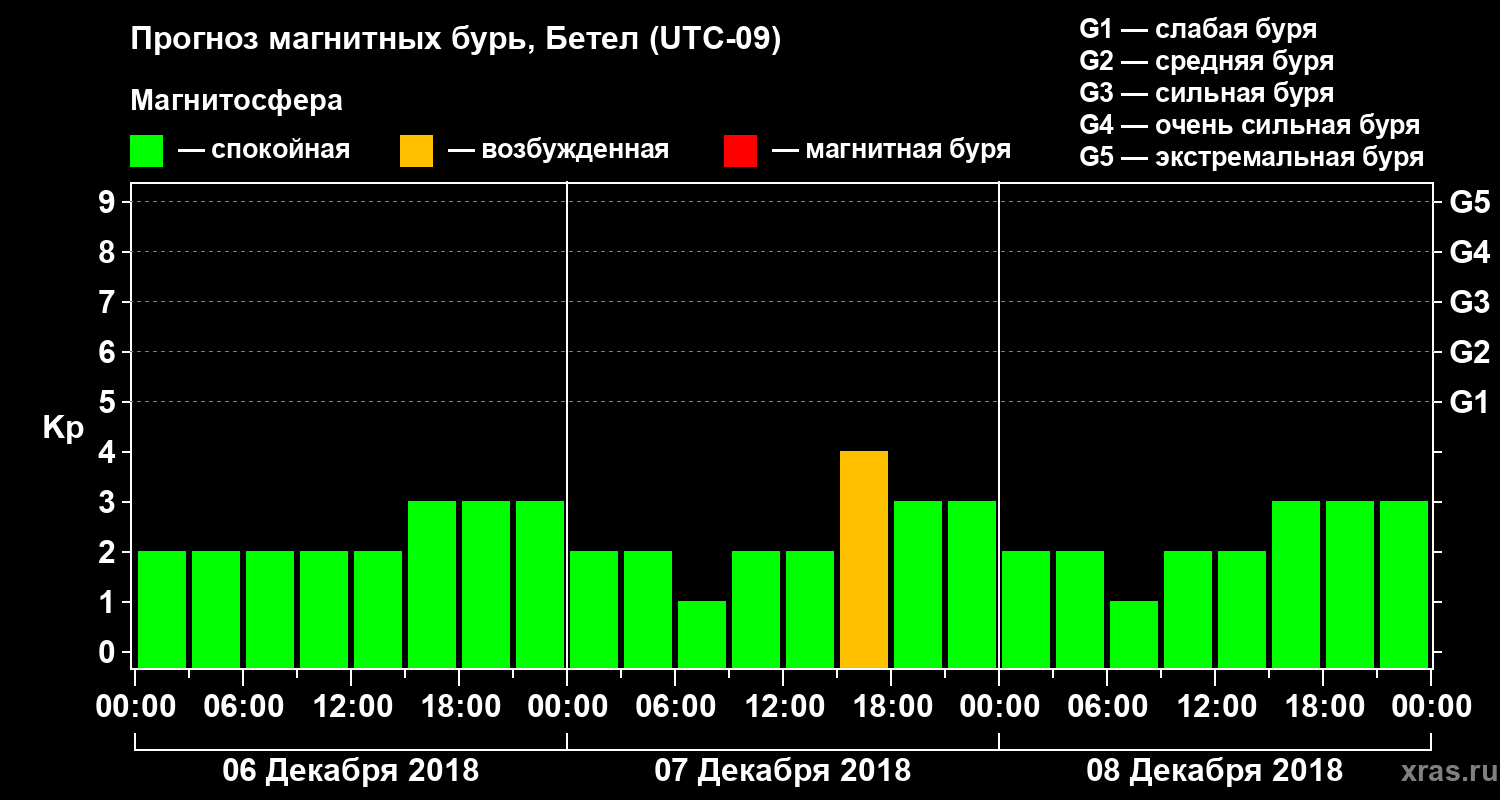 Прогноз магнитных бурь в Бетеле — 6 декабря 2018 года