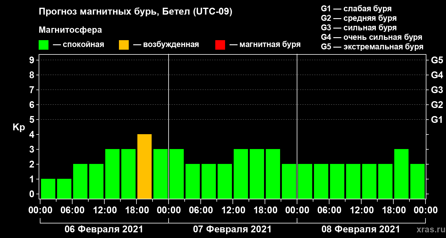 Прогноз магнитных бурь в Бетеле — 6 февраля 2021 года