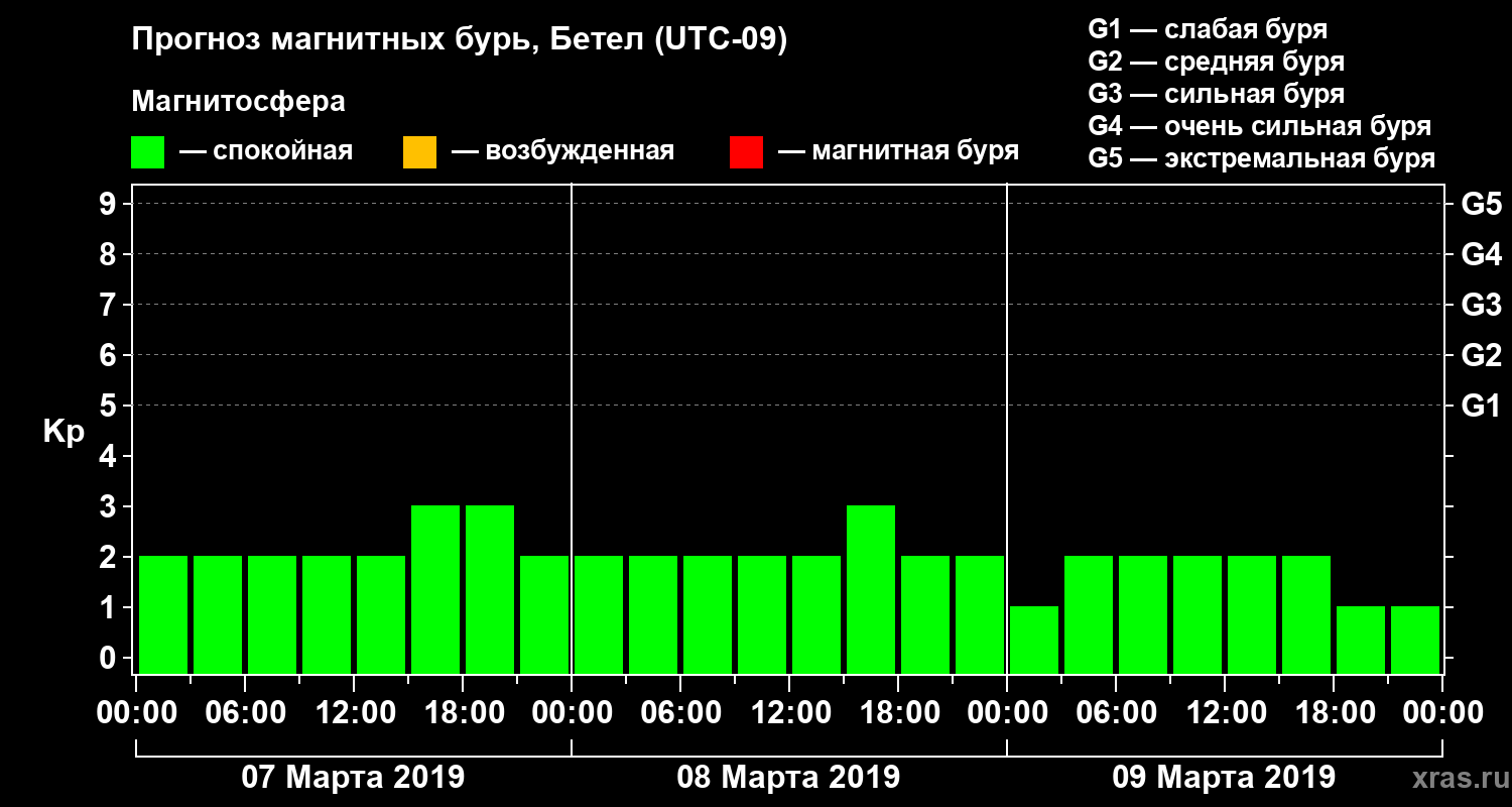 Прогноз магнитных бурь в Бетеле на 7 марта 2019 года