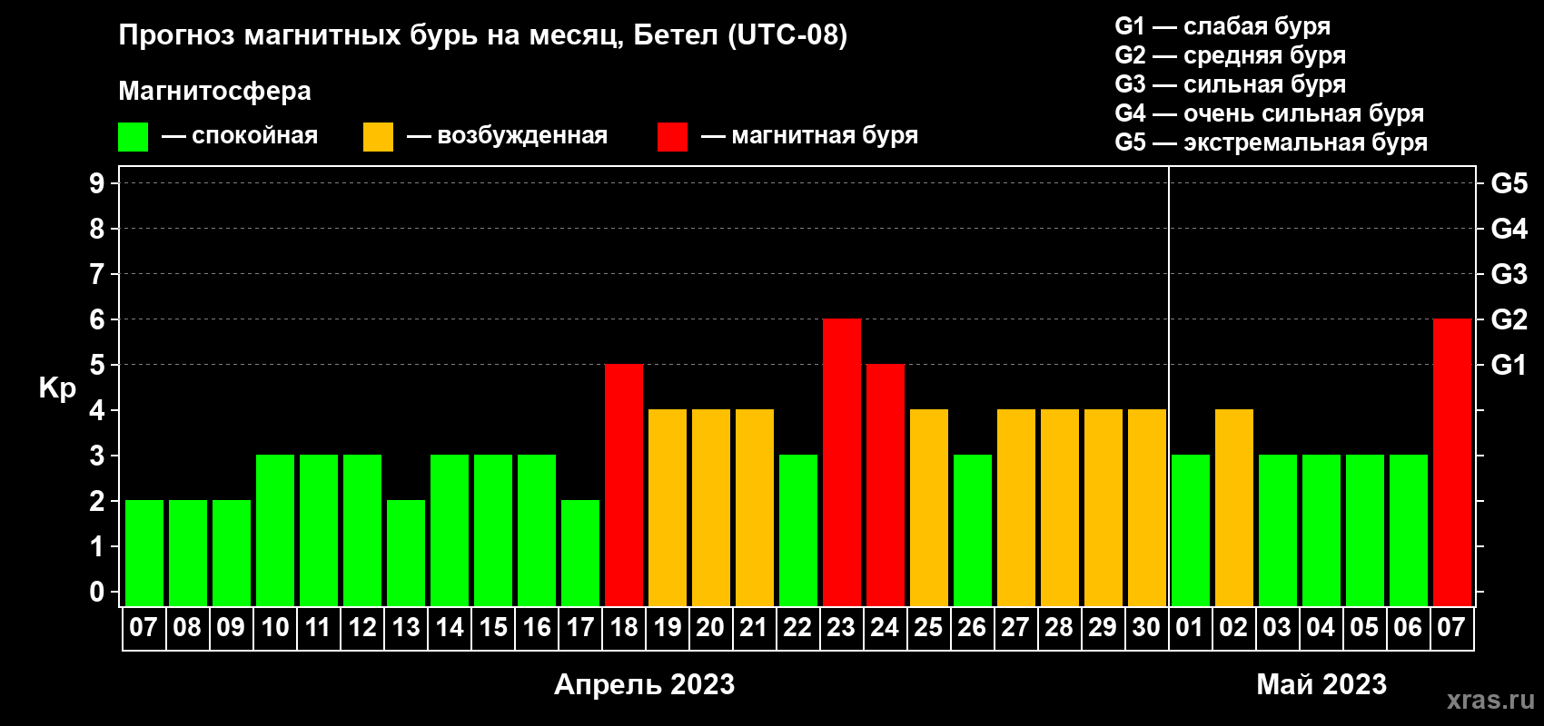 Прогноз магнитных бурь в Бетеле — 7 апреля 2023 года