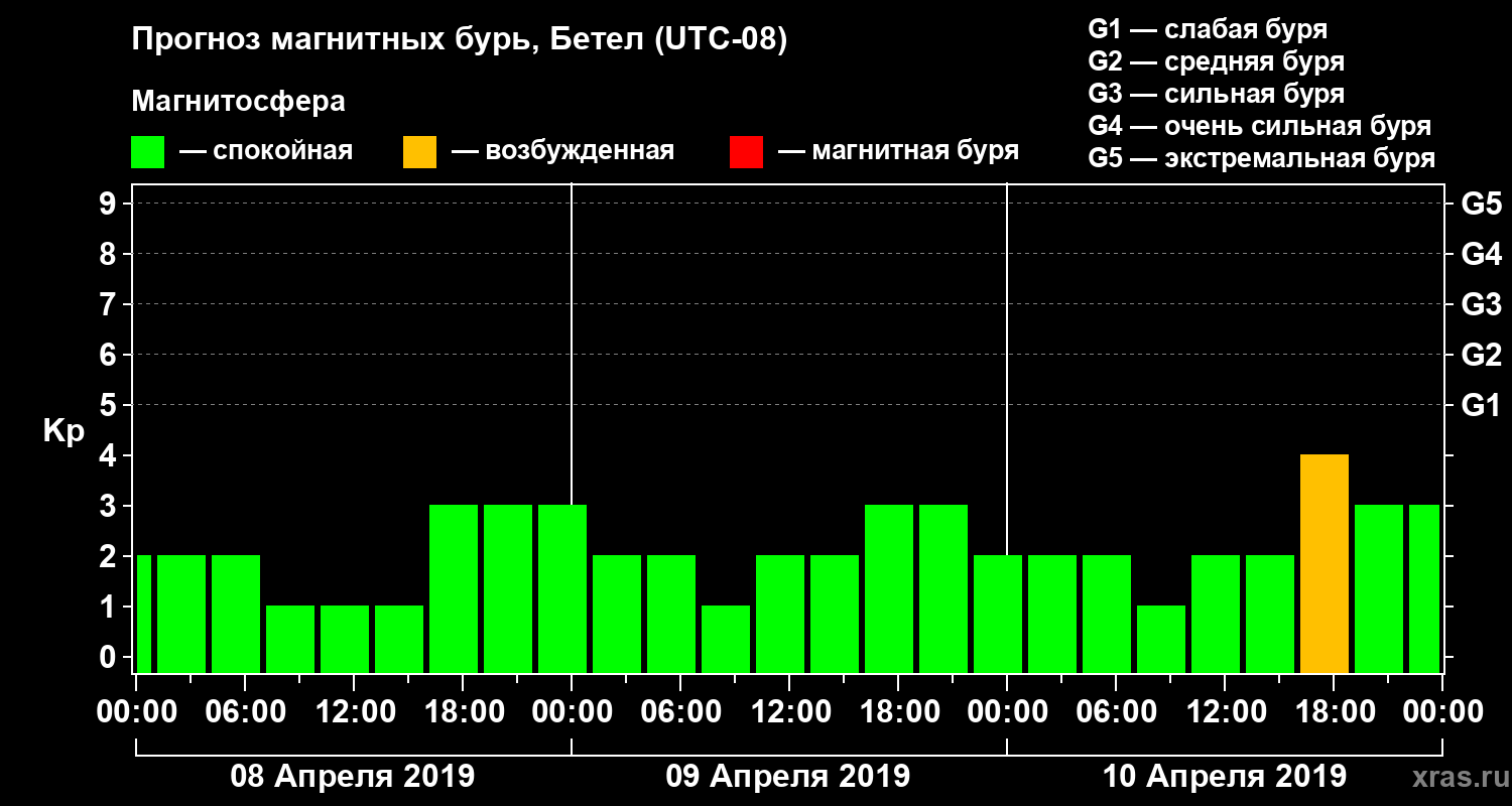 Прогноз магнитных бурь в Бетеле — 8 апреля 2019 года