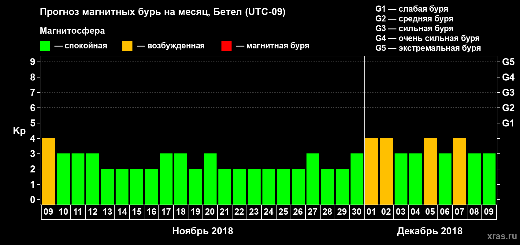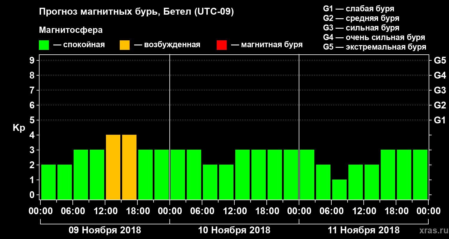Прогноз магнитных бурь в Бетеле — 9 ноября 2018 года