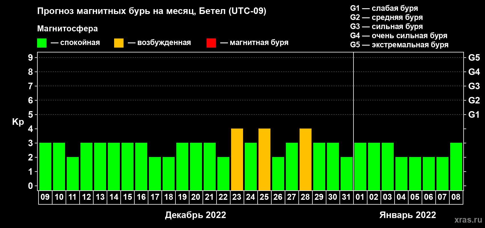 Прогноз магнитных бурь в Бетеле — 9 декабря 2021 года