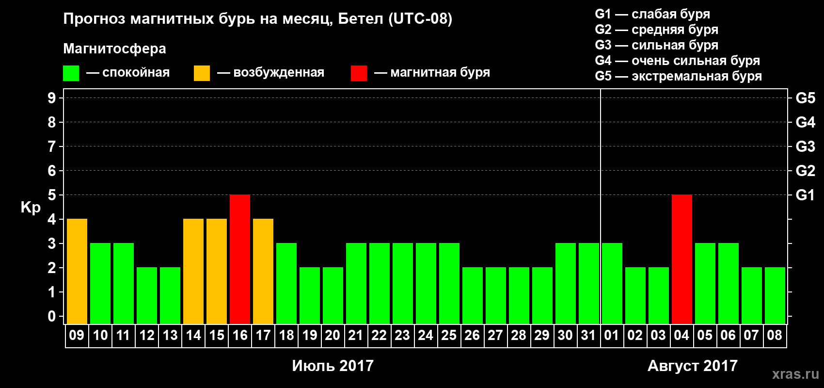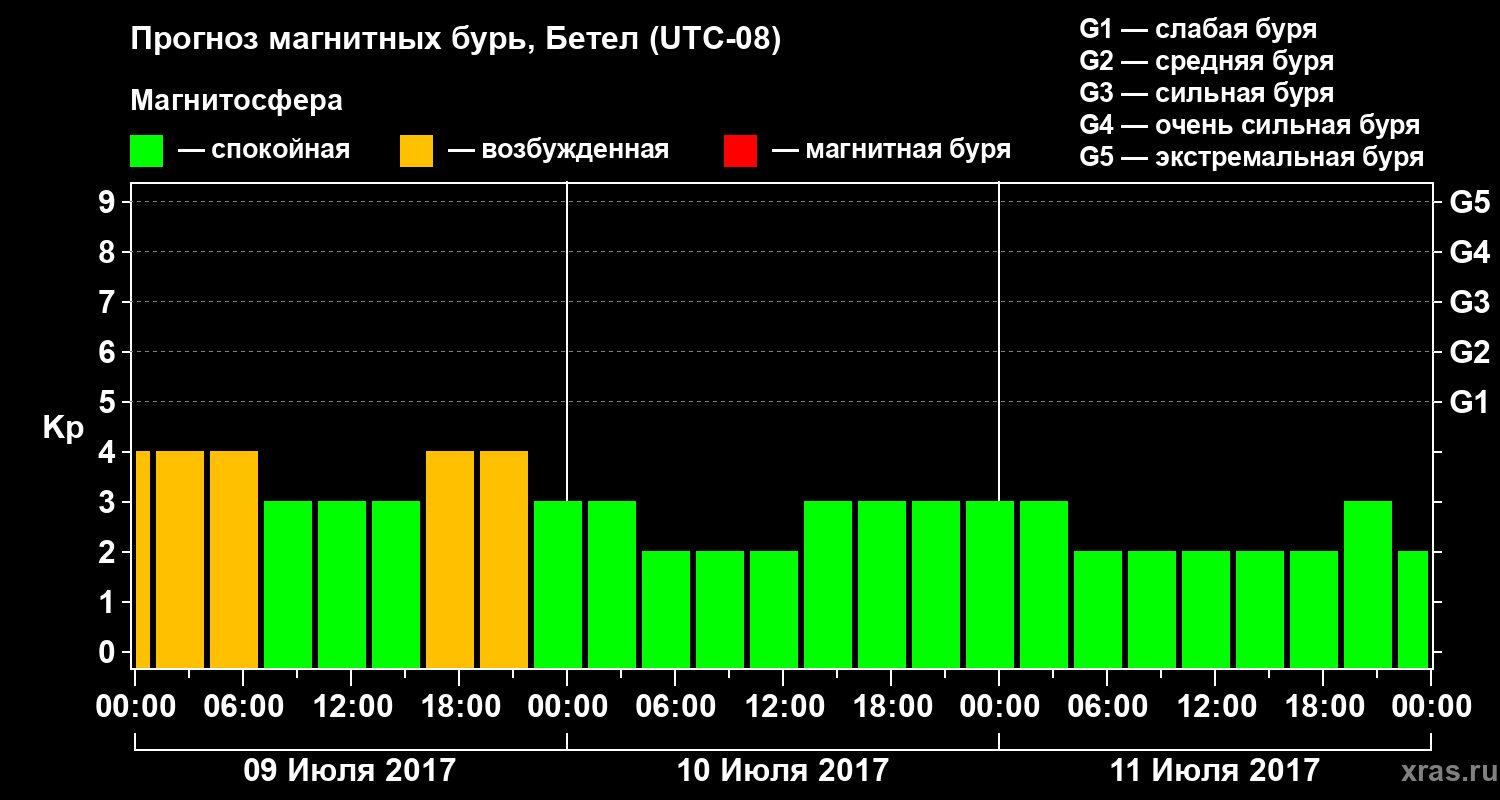 Прогноз магнитных бурь в Бетеле — 9 июля 2017 года