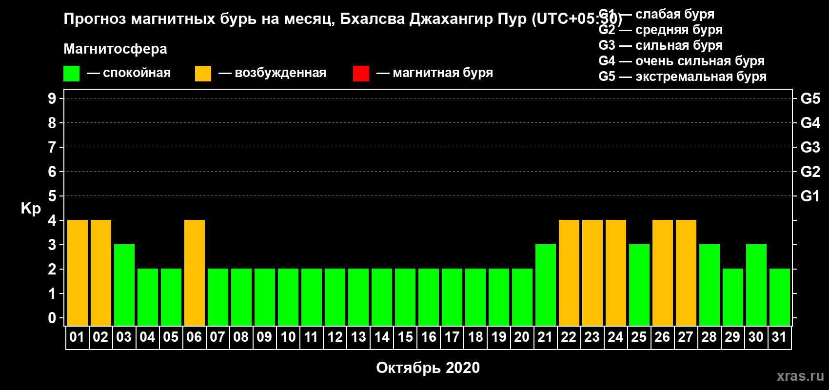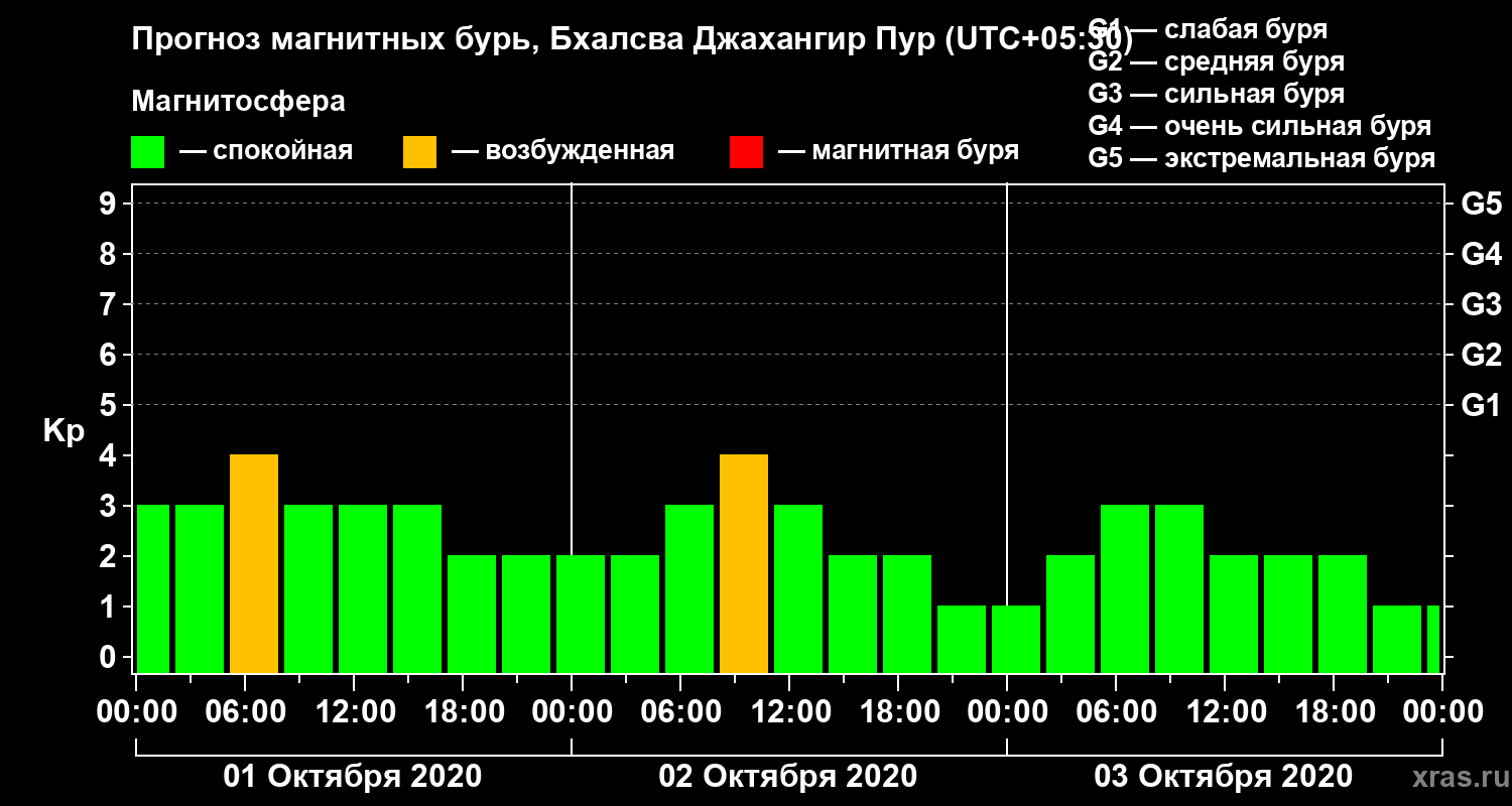 Прогноз магнитных бурь в Бхалсва Джахангир Пуре — 1 октября 2020 года