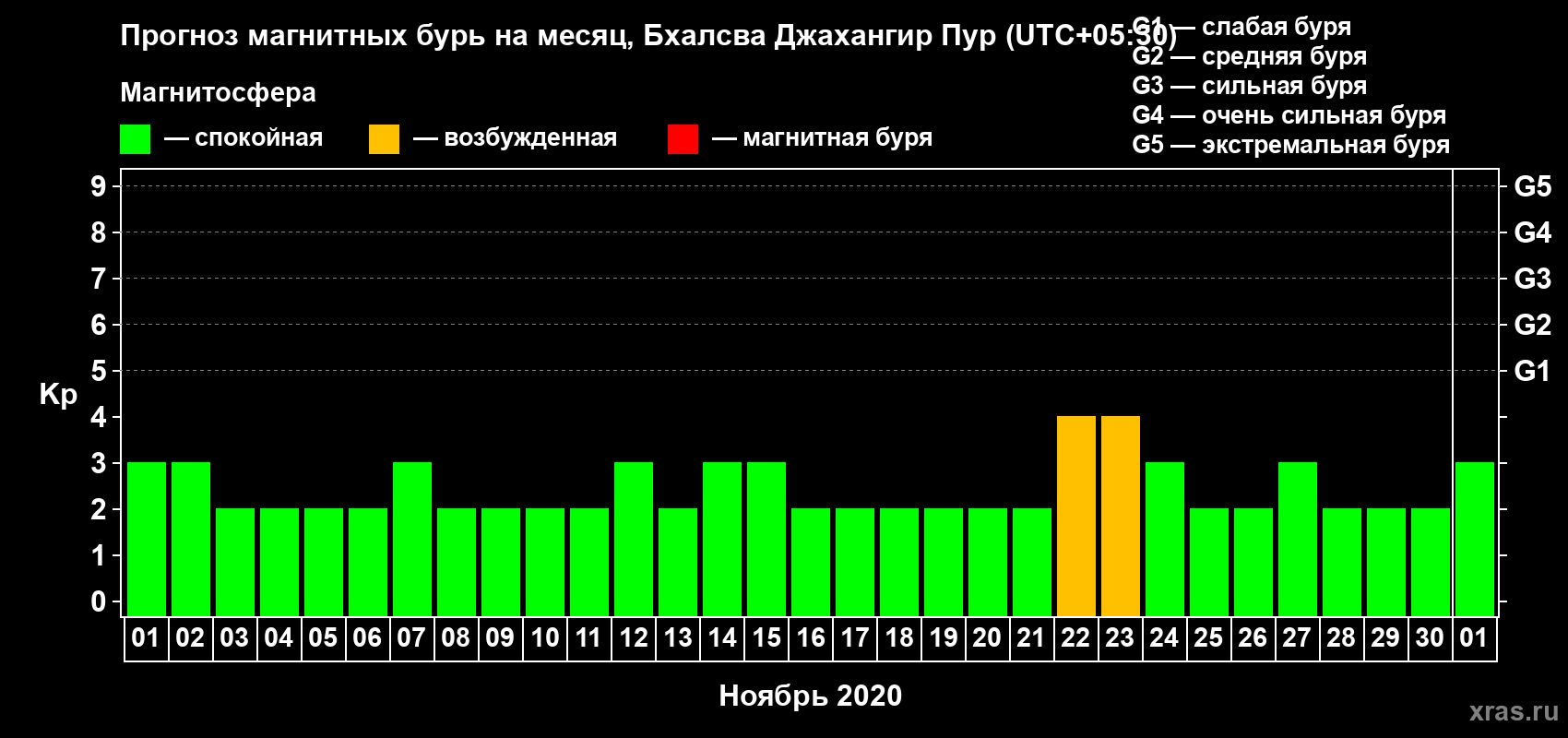 Прогноз магнитных бурь в Бхалсва Джахангир Пуре — 1 ноября 2020 года