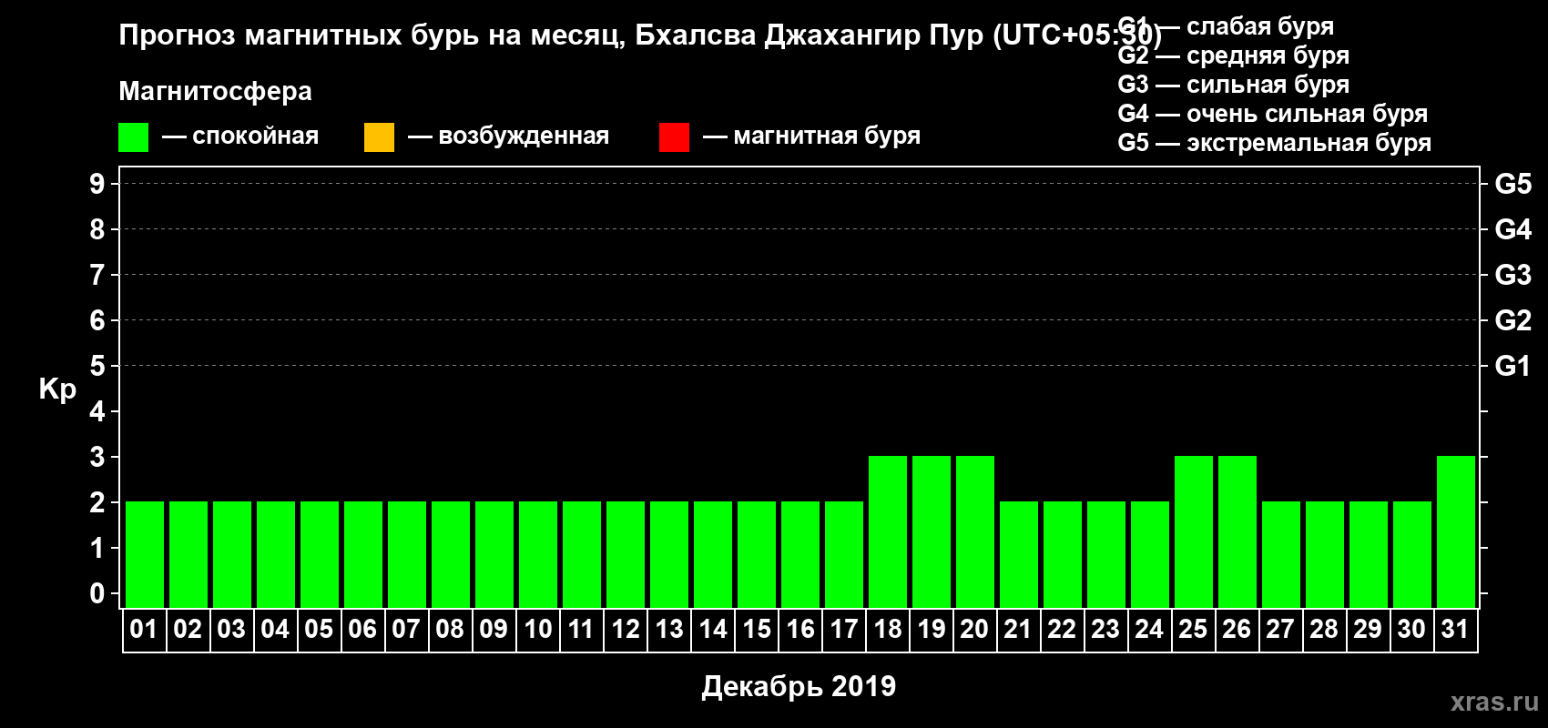 Прогноз магнитных бурь в Бхалсва Джахангир Пуре — 1 декабря 2019 года