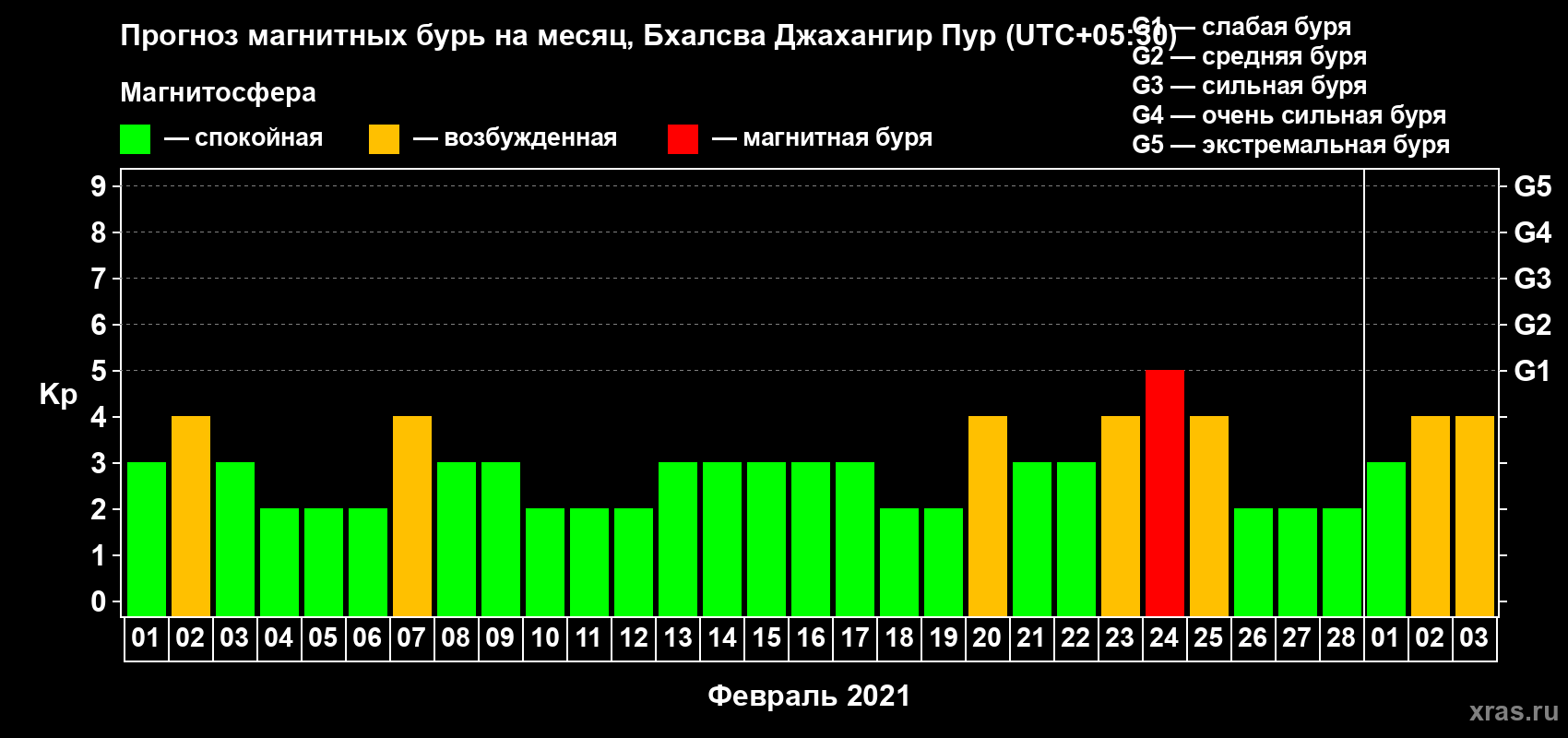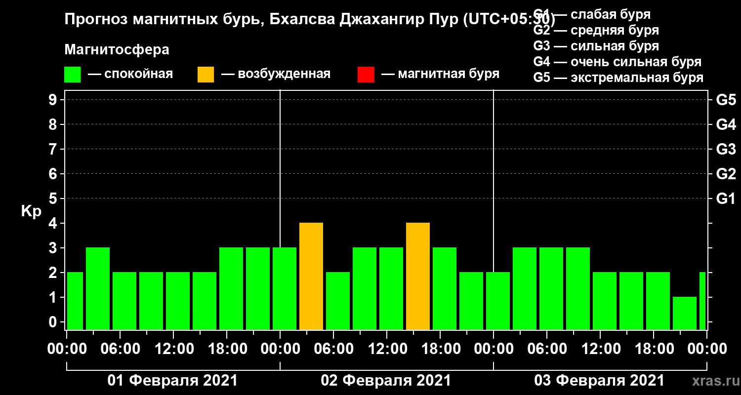 Прогноз магнитных бурь в Бхалсва Джахангир Пуре — 1 февраля 2021 года