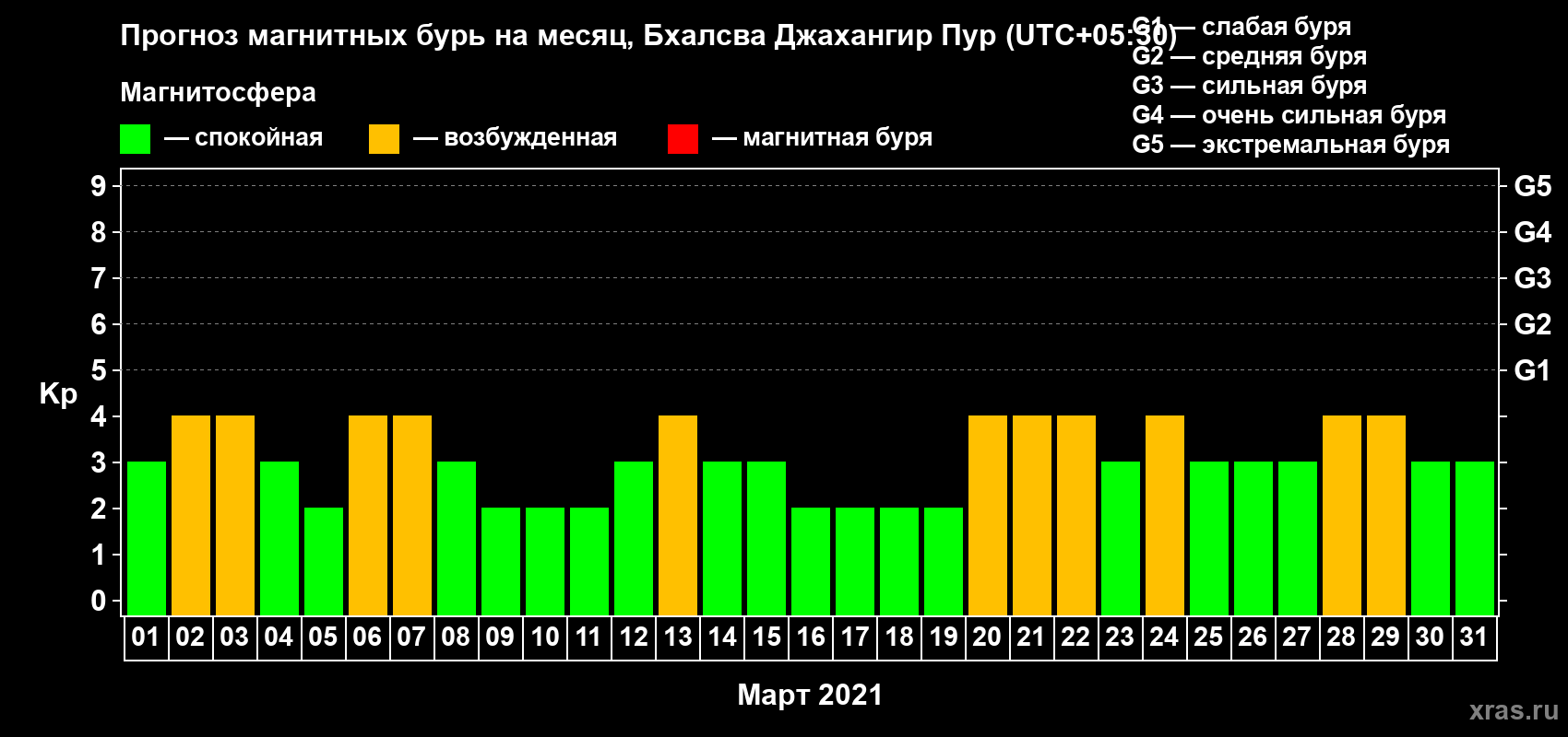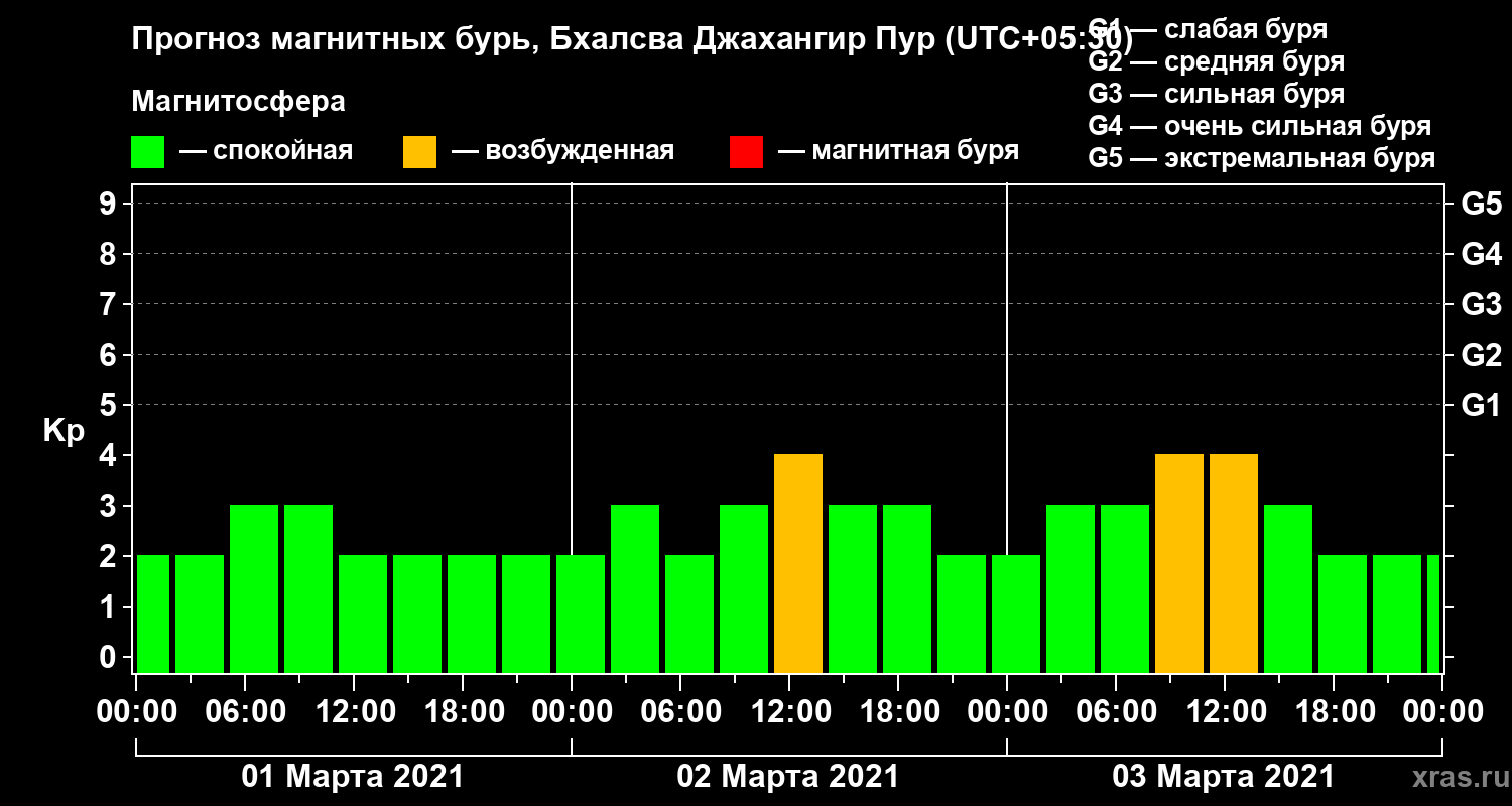 Прогноз магнитных бурь в Бхалсва Джахангир Пуре — 1 марта 2021 года