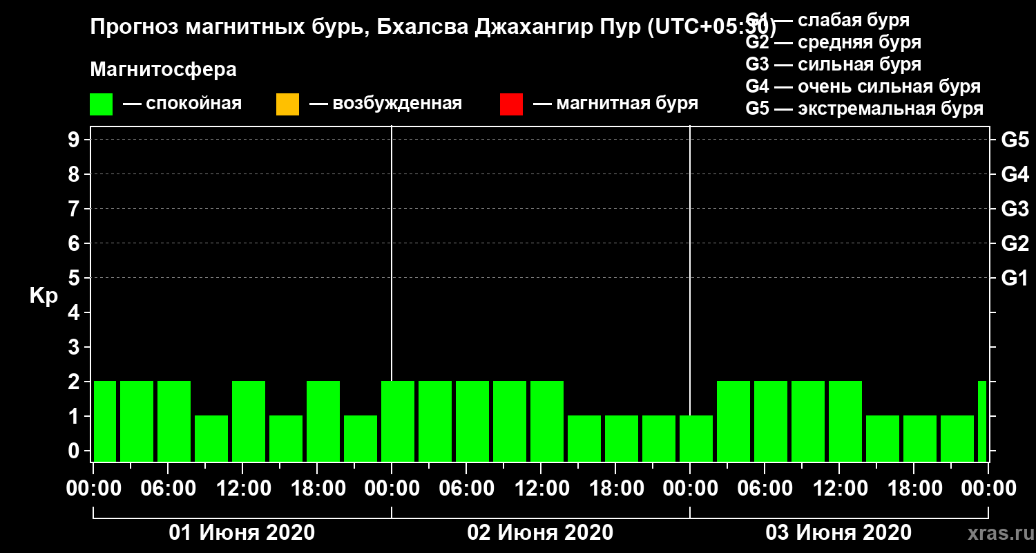 Прогноз магнитных бурь в Бхалсва Джахангир Пуре — 1 июня 2020 года