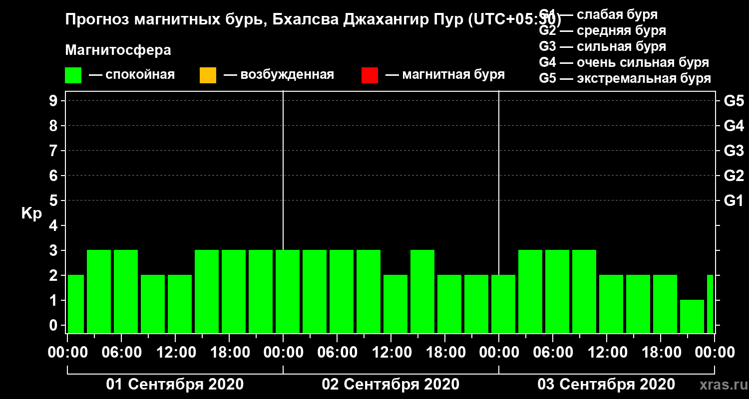 Прогноз магнитных бурь в Бхалсва Джахангир Пуре на 1 сентября 2020 года
