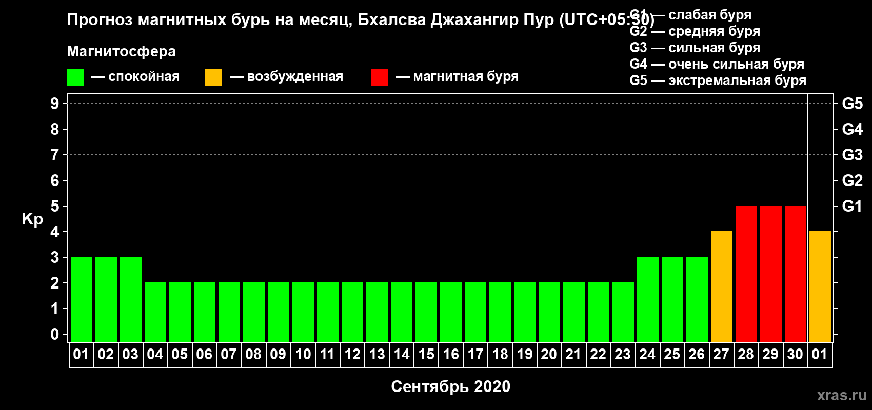 Прогноз магнитных бурь в Бхалсва Джахангир Пуре — 1 сентября 2020 года