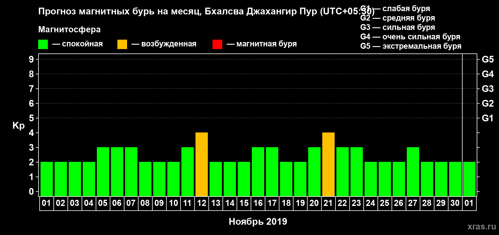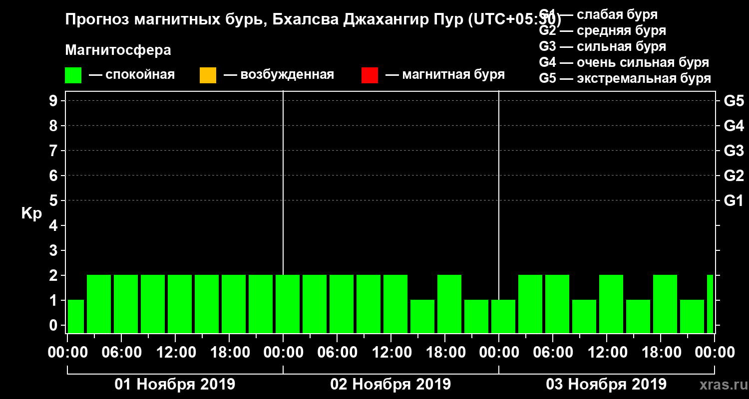 Прогноз магнитных бурь в Бхалсва Джахангир Пуре — 1 ноября 2019 года