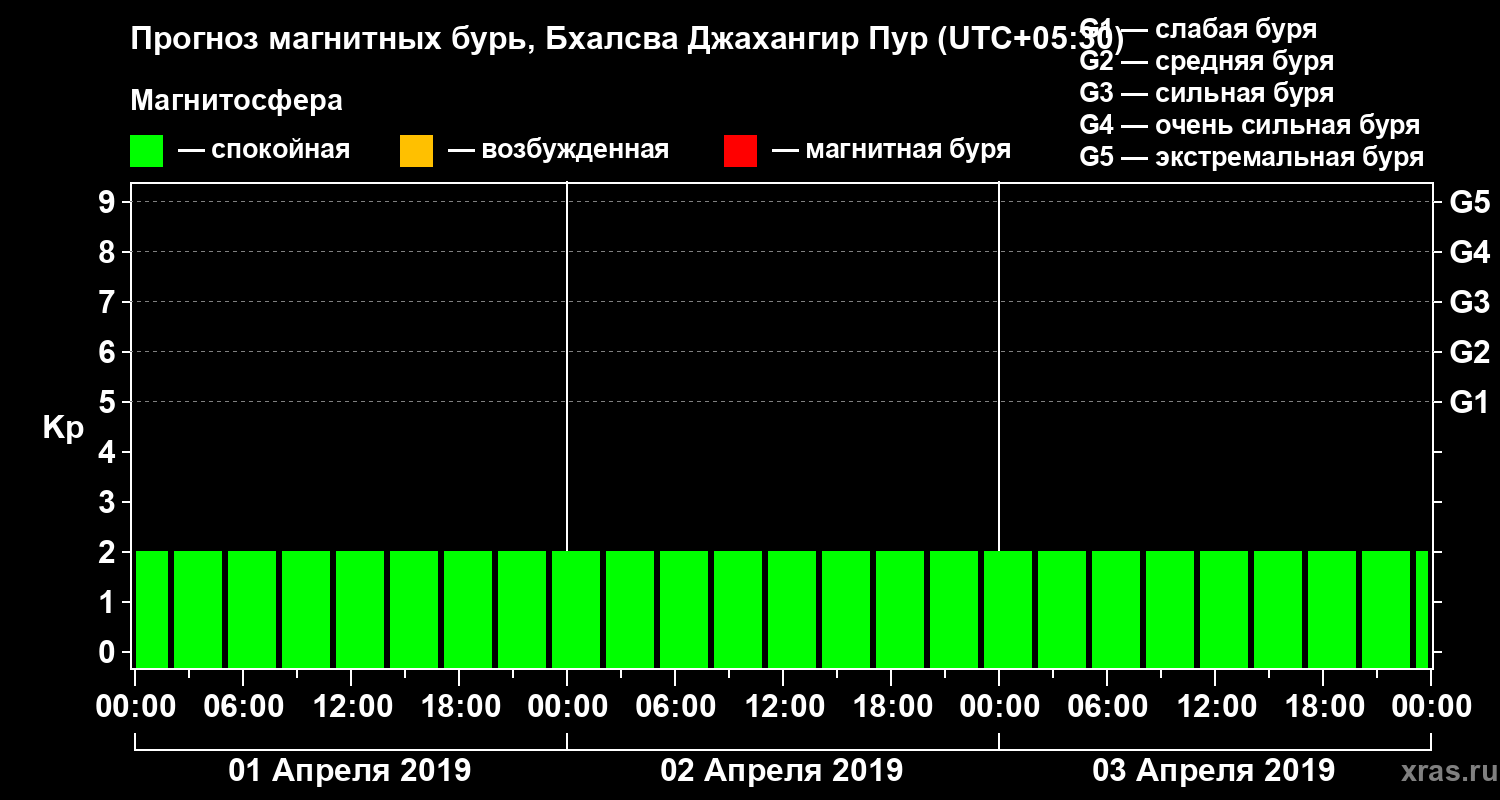 Прогноз магнитных бурь в Бхалсва Джахангир Пуре — 1 апреля 2019 года