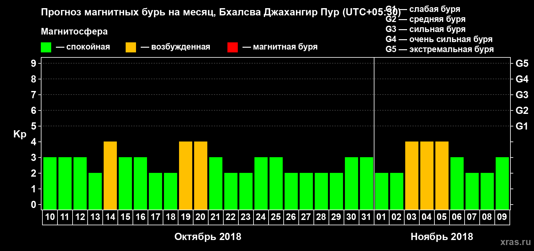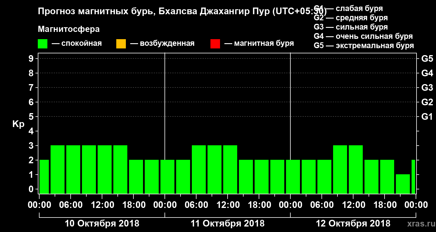 Прогноз магнитных бурь в Бхалсва Джахангир Пуре — 10 октября 2018 года