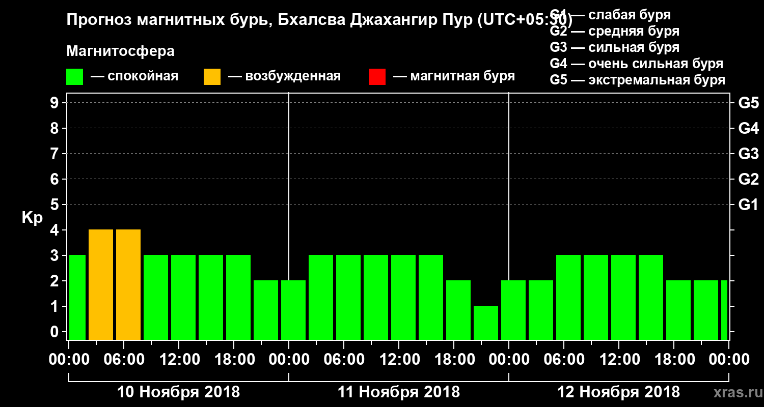 Прогноз магнитных бурь в Бхалсва Джахангир Пуре — 10 ноября 2018 года