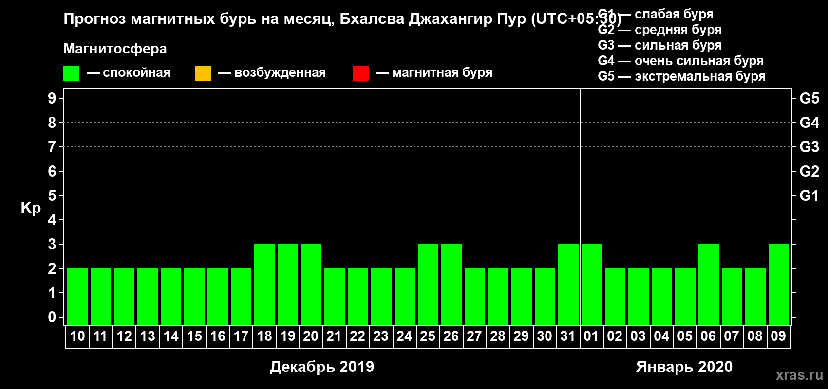 Прогноз магнитных бурь в Бхалсва Джахангир Пуре — 10 декабря 2019 года