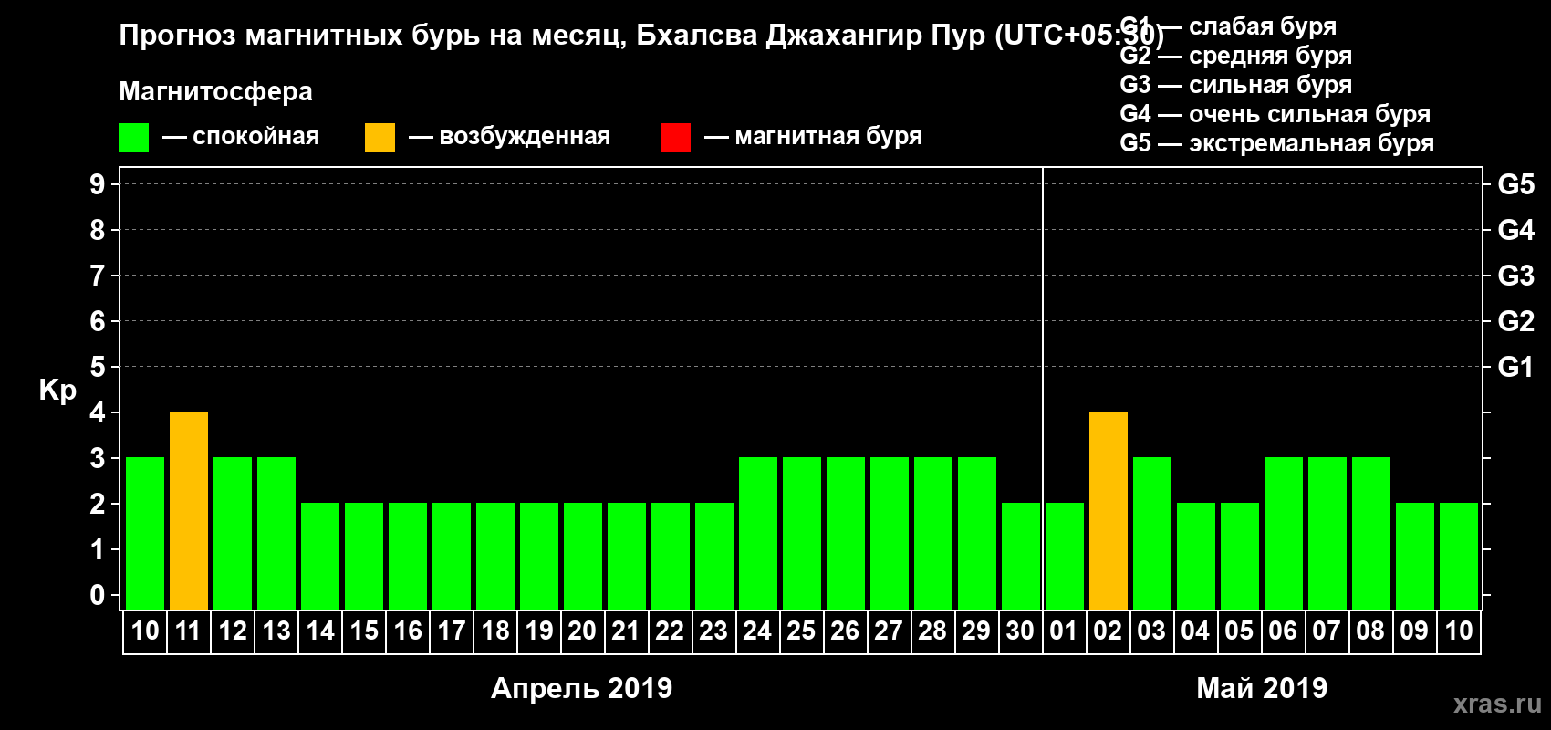 Прогноз магнитных бурь в Бхалсва Джахангир Пуре — 10 апреля 2019 года