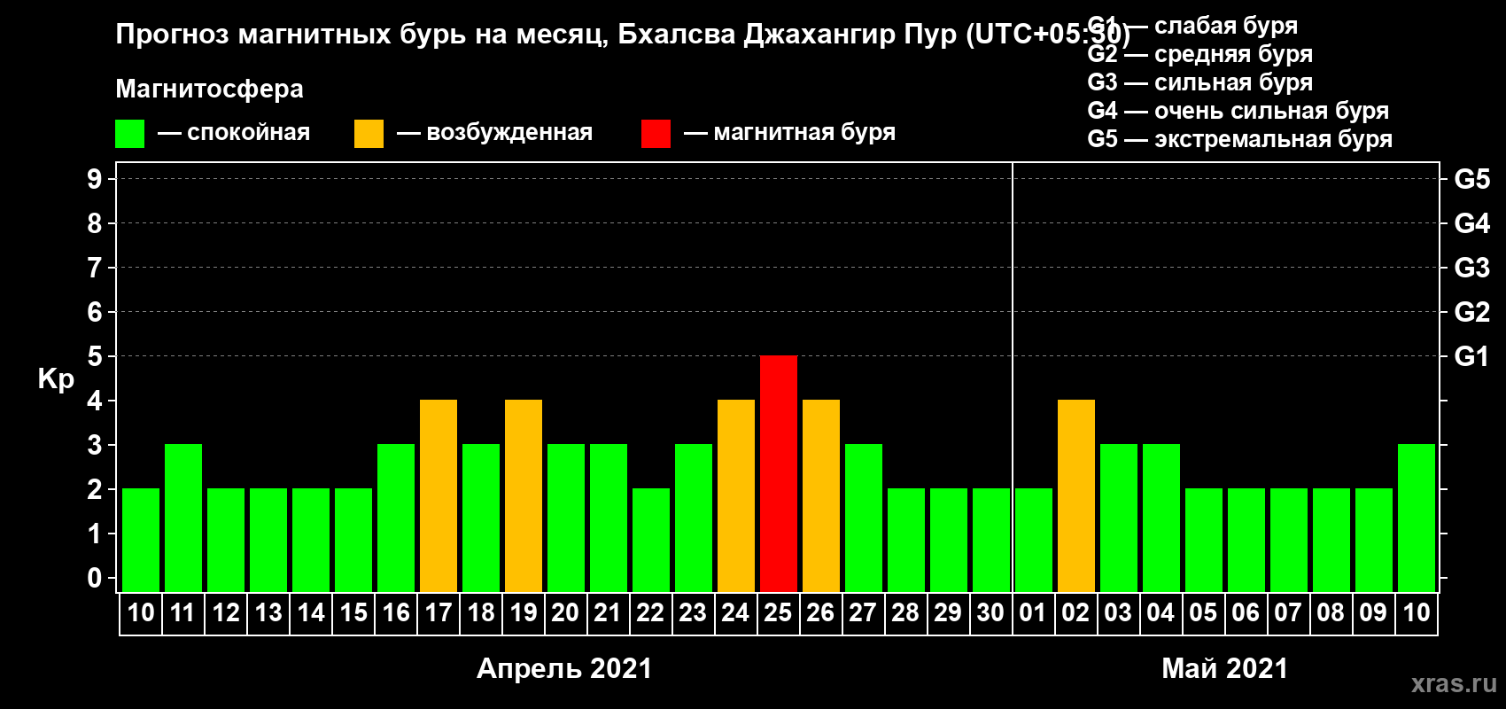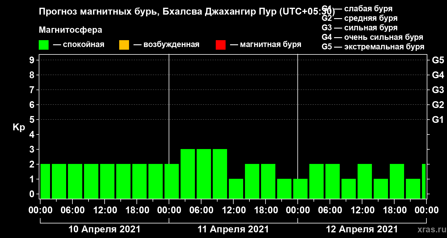 Прогноз магнитных бурь в Бхалсва Джахангир Пуре — 10 апреля 2021 года