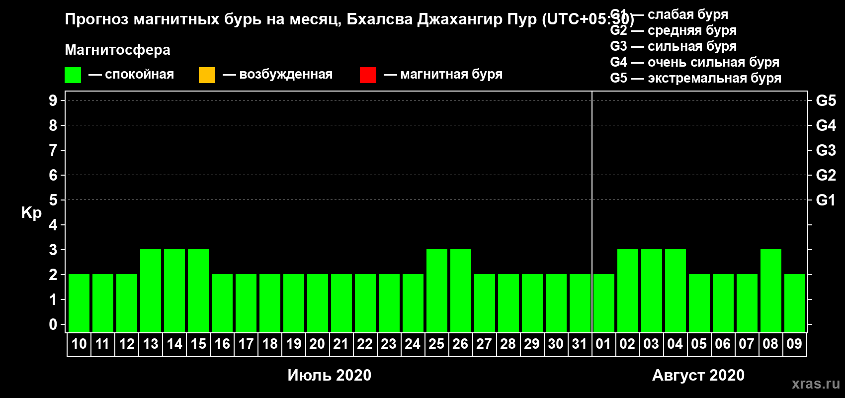 Прогноз магнитных бурь в Бхалсва Джахангир Пуре — 10 июля 2020 года