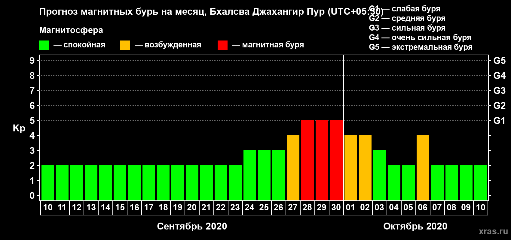 Прогноз магнитных бурь в Бхалсва Джахангир Пуре — 10 сентября 2020 года