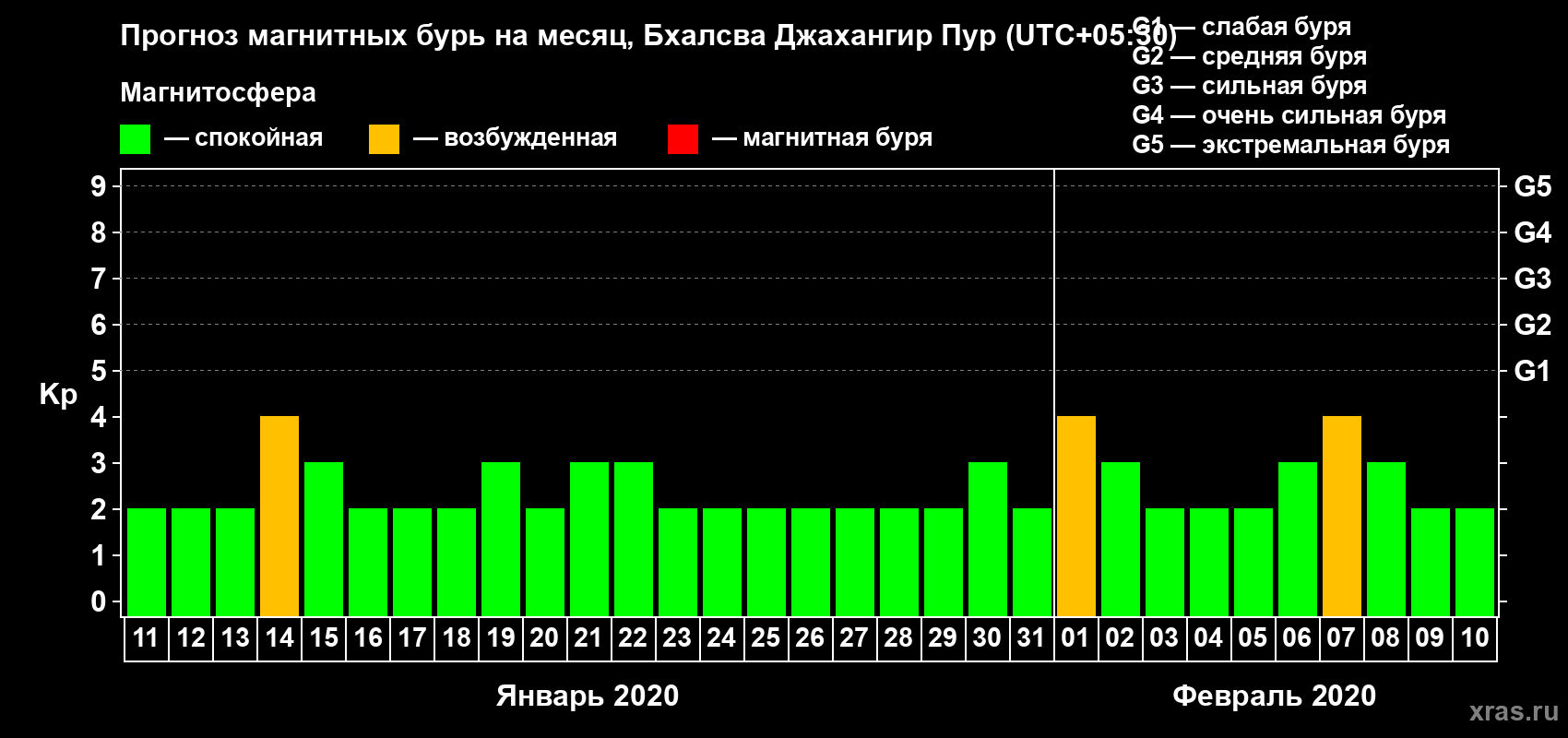 Прогноз магнитных бурь в Бхалсва Джахангир Пуре — 11 января 2020 года