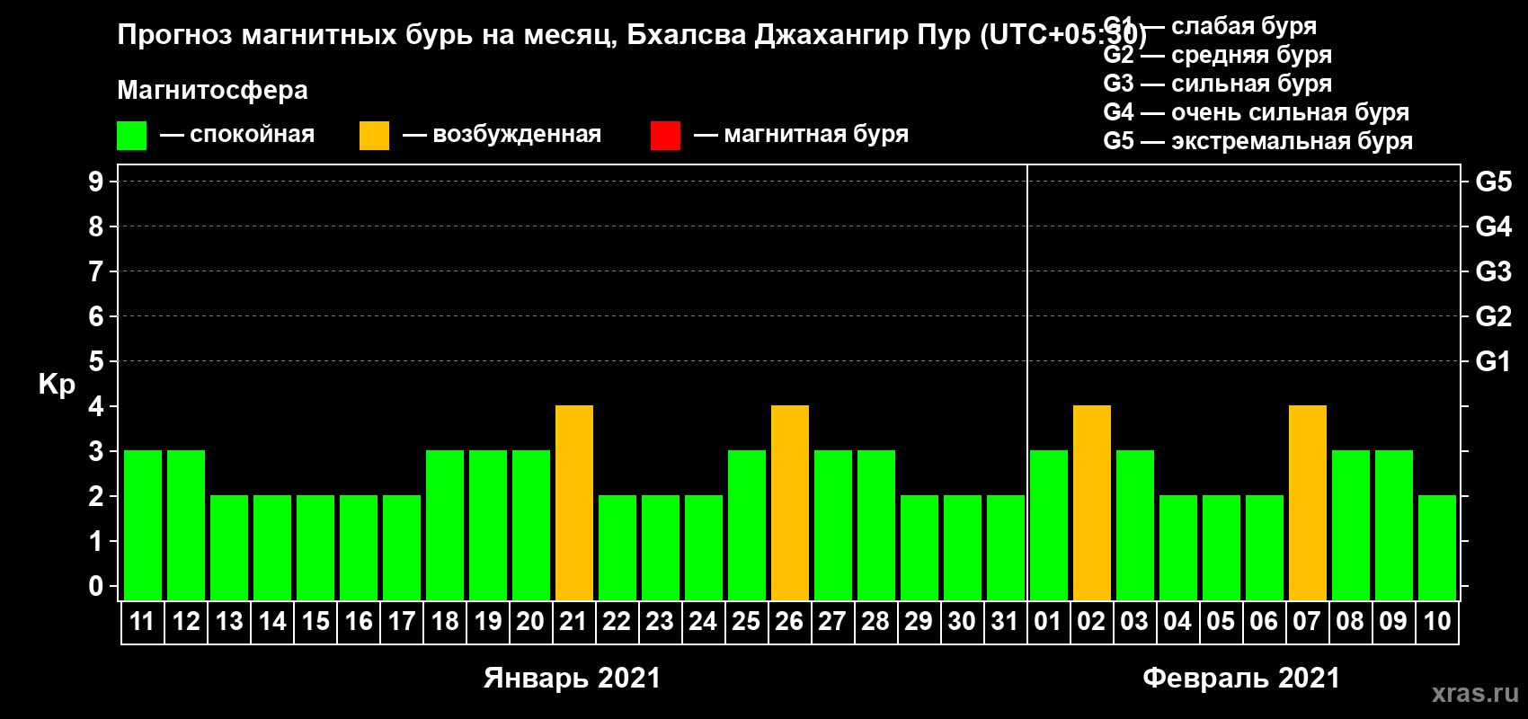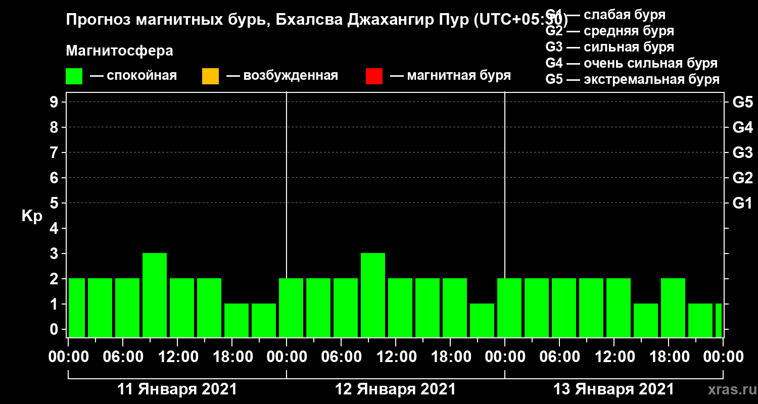 Прогноз магнитных бурь в Бхалсва Джахангир Пуре — 11 января 2021 года