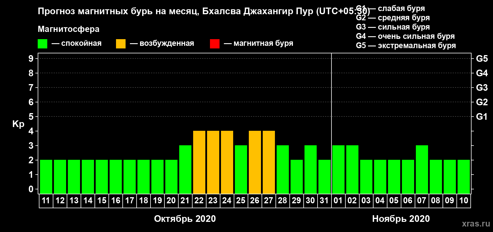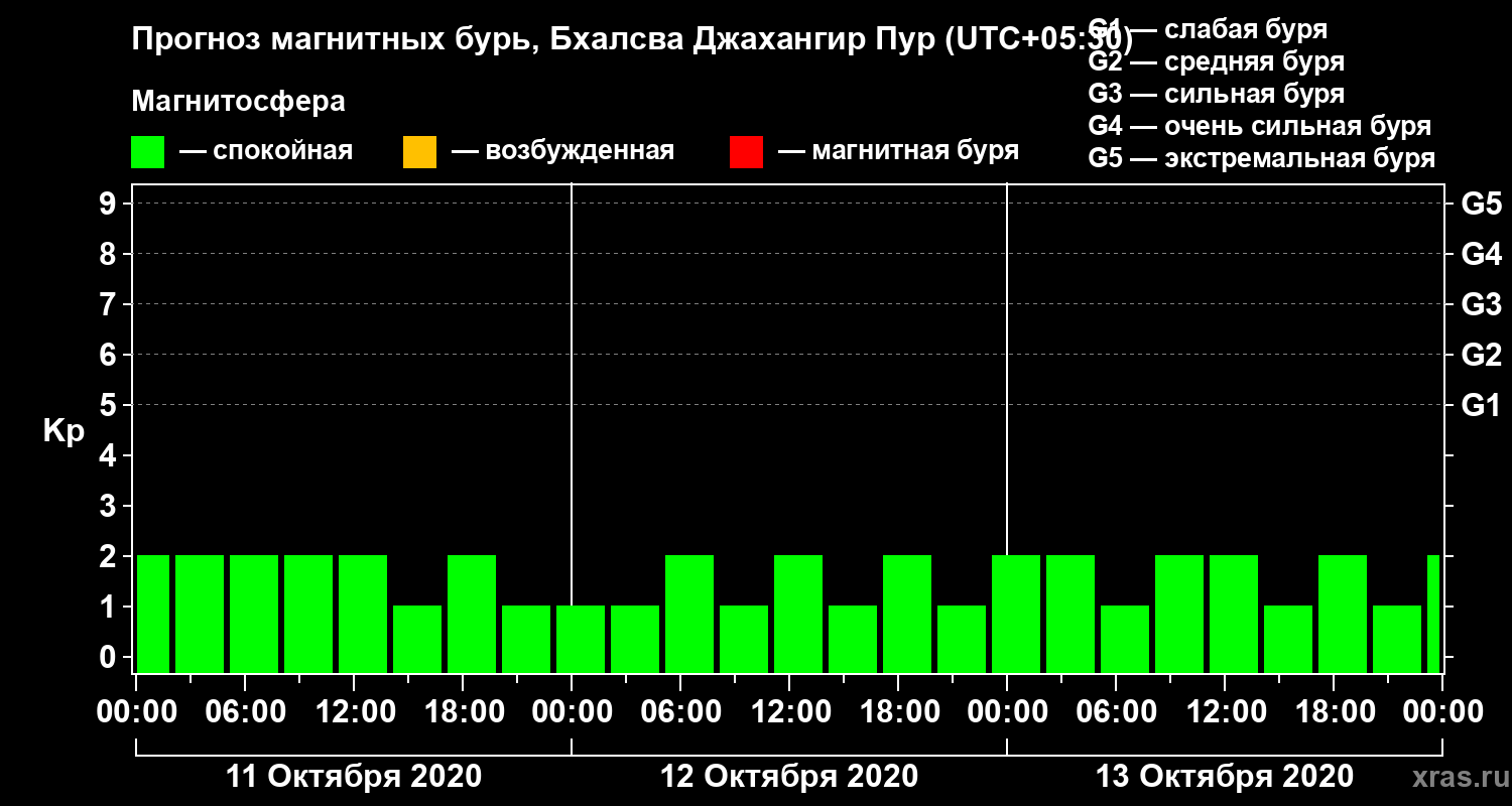 Прогноз магнитных бурь в Бхалсва Джахангир Пуре — 11 октября 2020 года