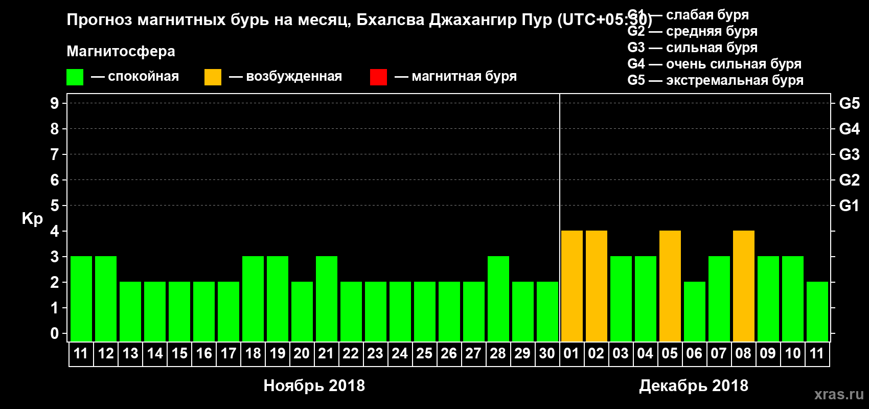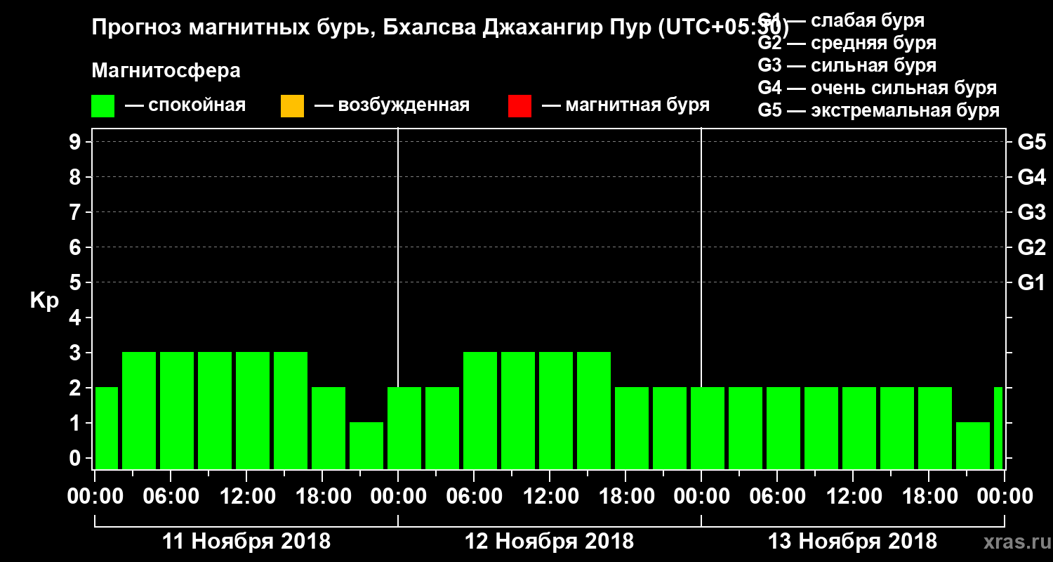 Прогноз магнитных бурь в Бхалсва Джахангир Пуре — 11 ноября 2018 года
