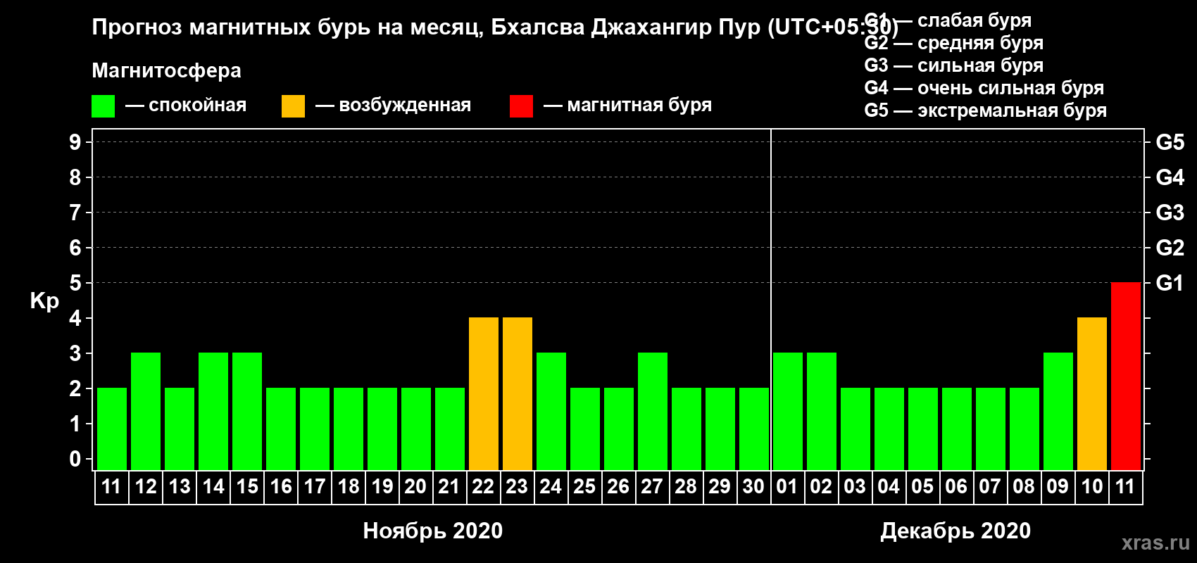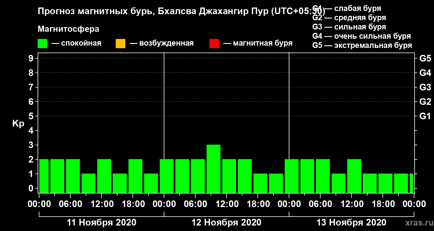 Прогноз магнитных бурь в Бхалсва Джахангир Пуре — 11 ноября 2020 года