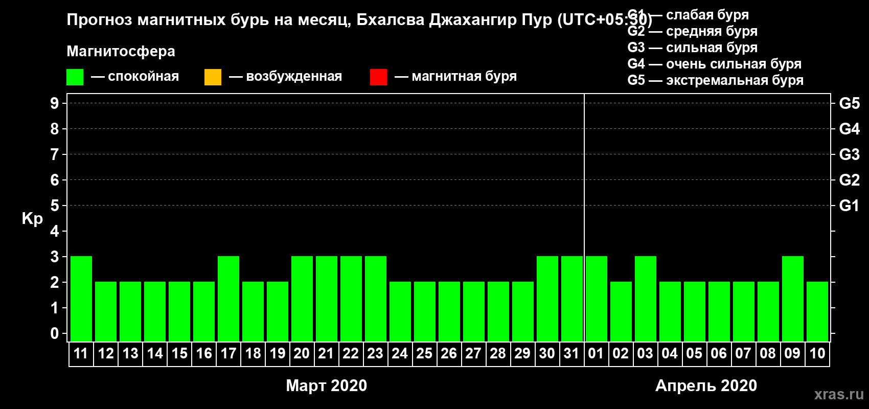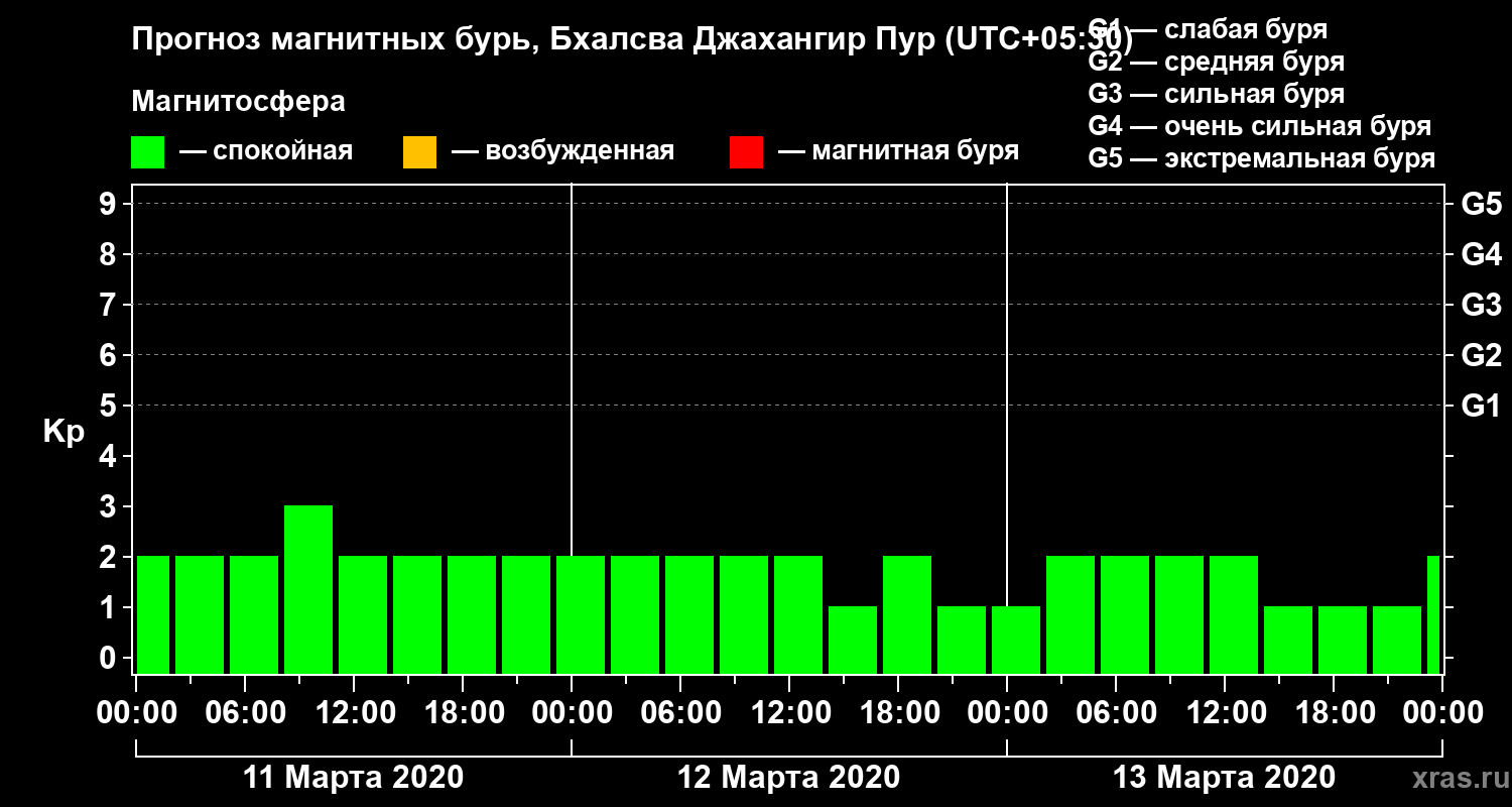 Прогноз магнитных бурь в Бхалсва Джахангир Пуре — 11 марта 2020 года