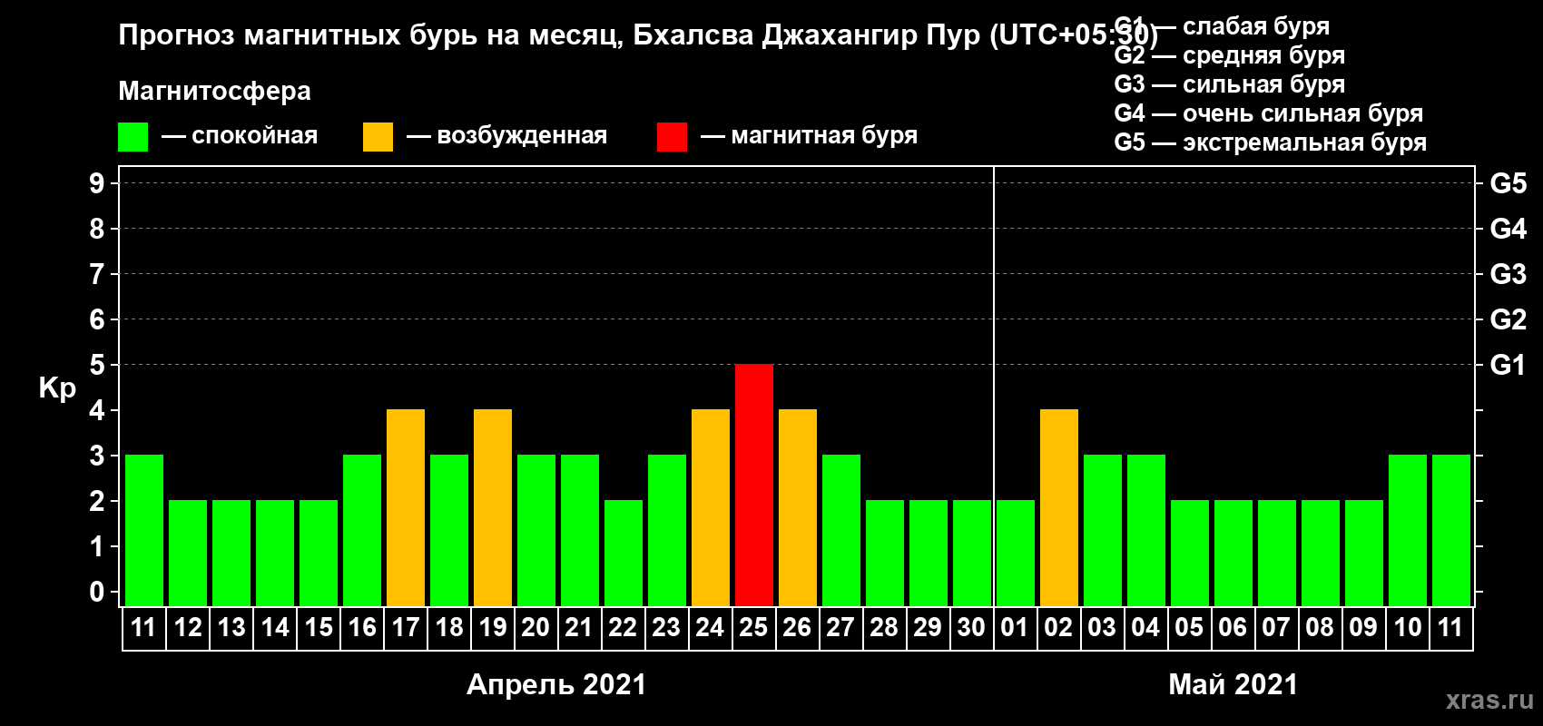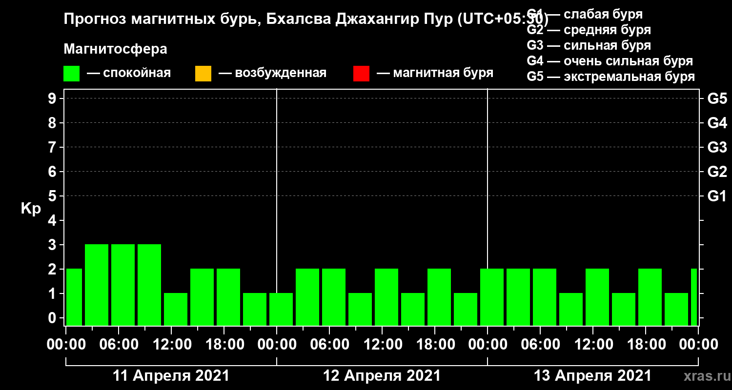 Прогноз магнитных бурь в Бхалсва Джахангир Пуре — 11 апреля 2021 года