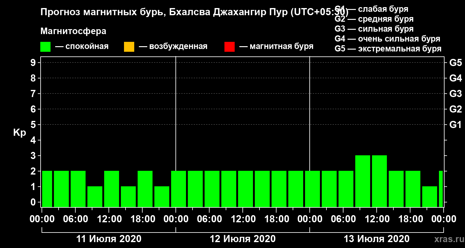 Прогноз магнитных бурь в Бхалсва Джахангир Пуре — 11 июля 2020 года