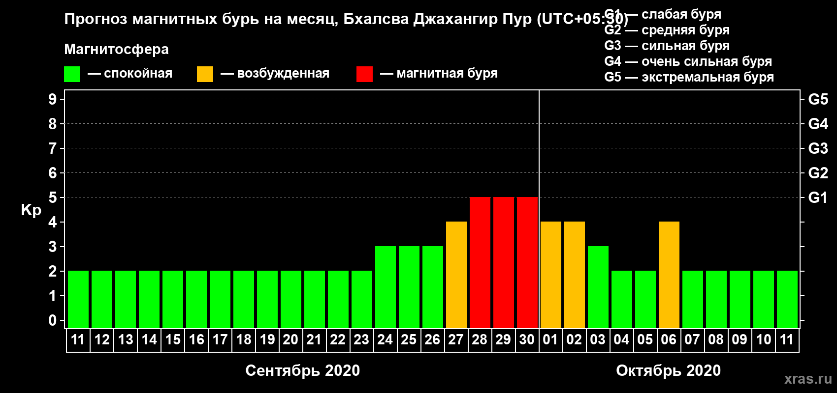 Прогноз магнитных бурь в Бхалсва Джахангир Пуре — 11 сентября 2020 года