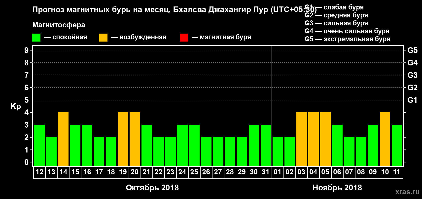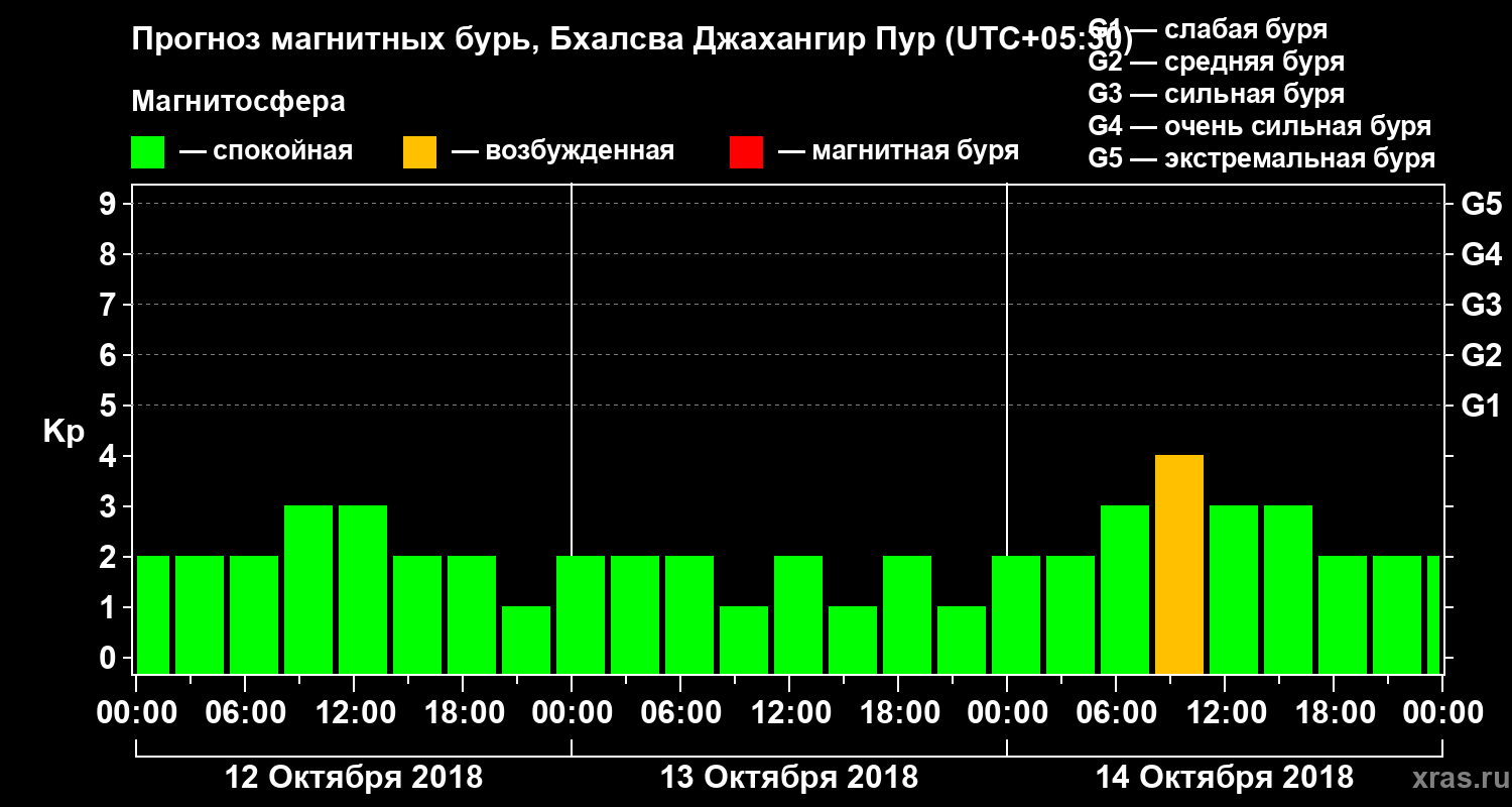 Прогноз магнитных бурь в Бхалсва Джахангир Пуре — 12 октября 2018 года