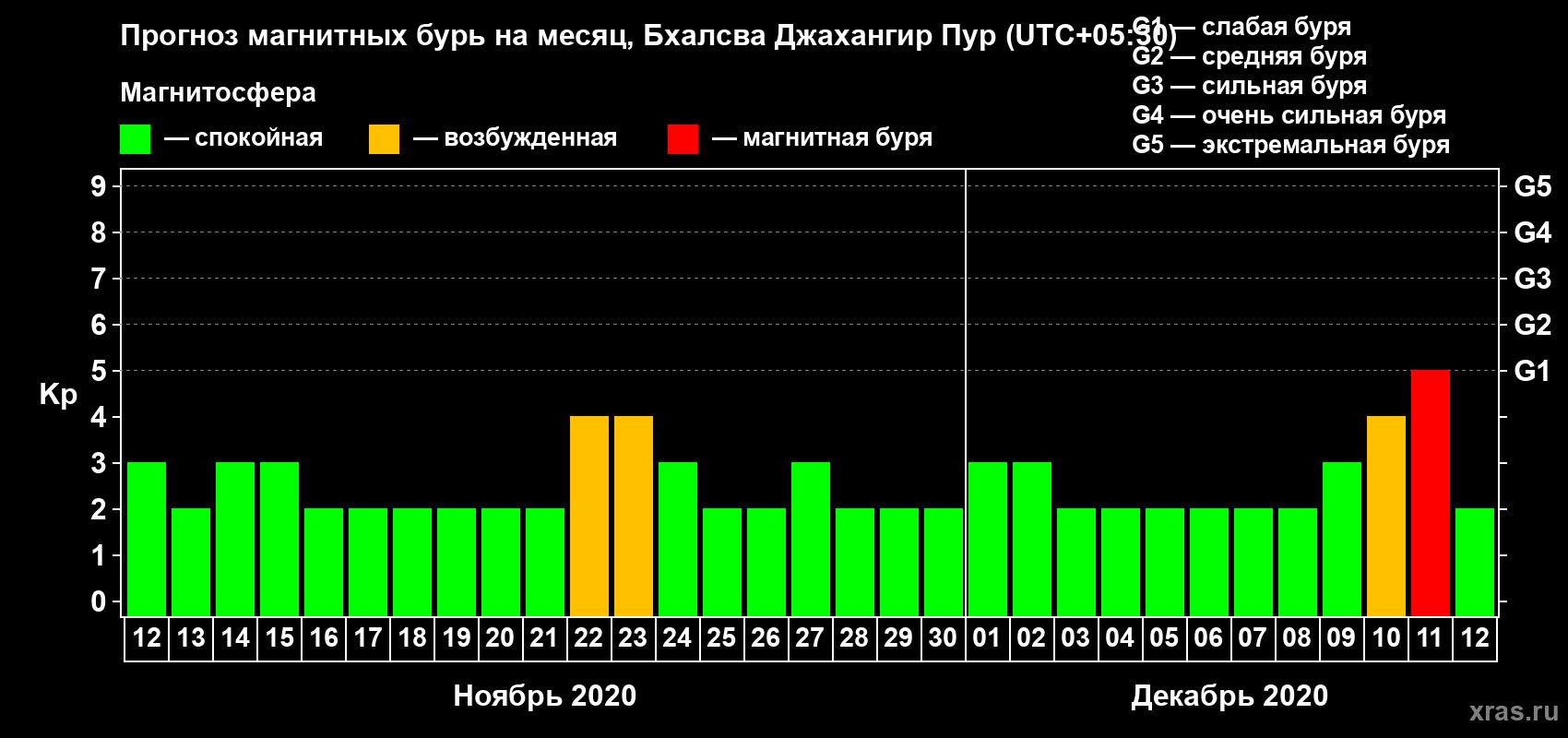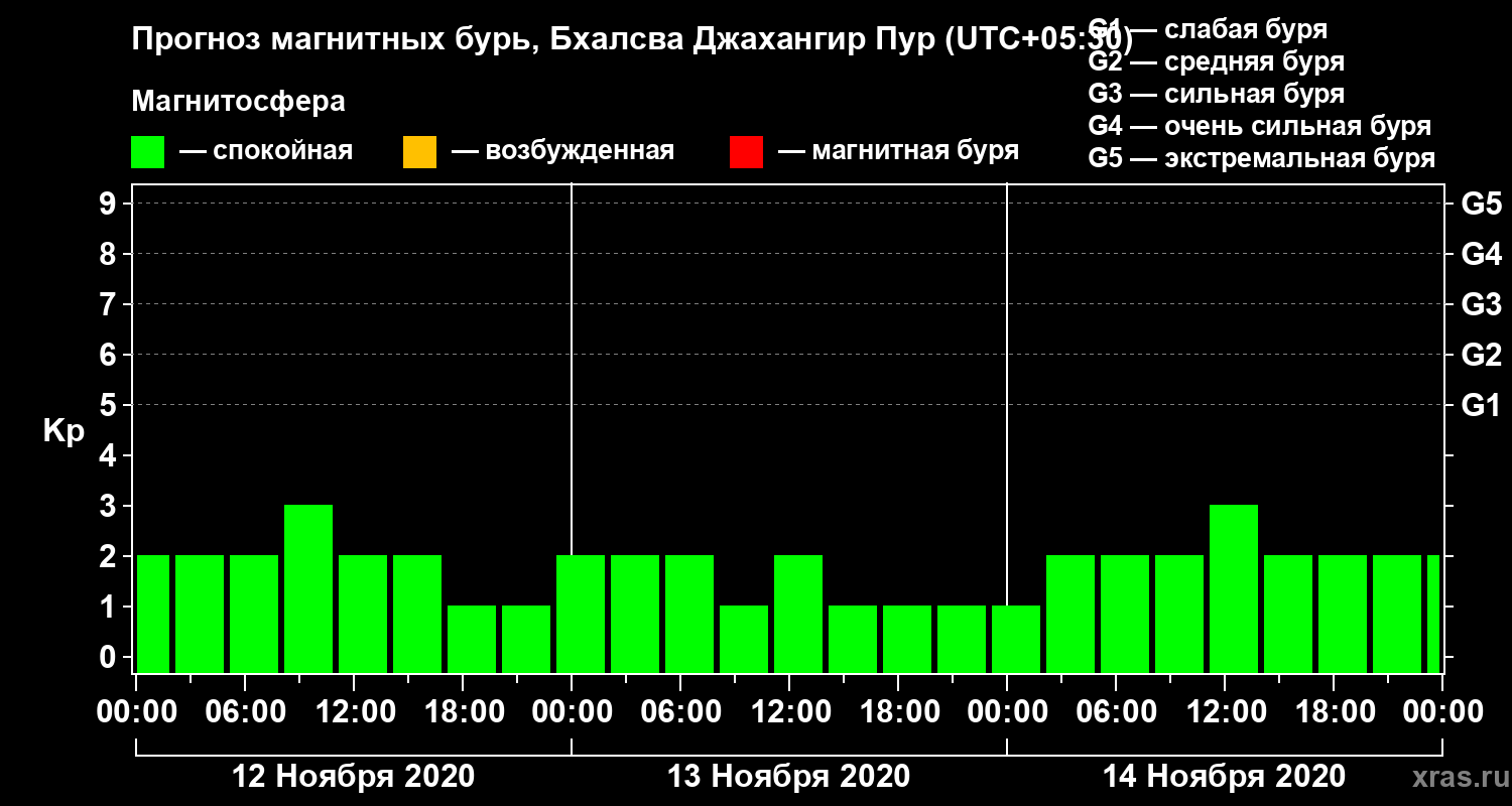 Прогноз магнитных бурь в Бхалсва Джахангир Пуре — 12 ноября 2020 года
