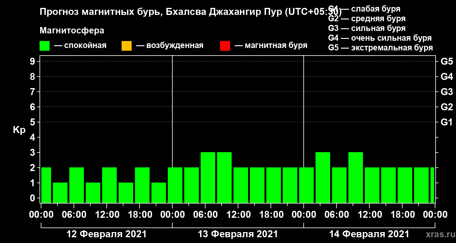 Прогноз магнитных бурь в Бхалсва Джахангир Пуре — 12 февраля 2021 года